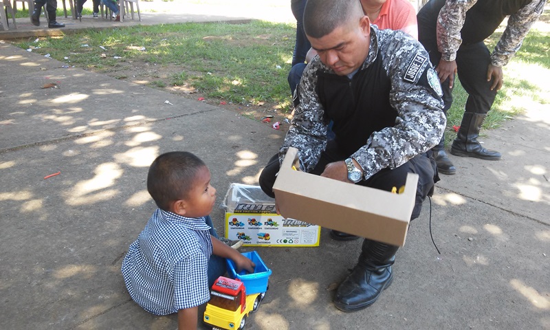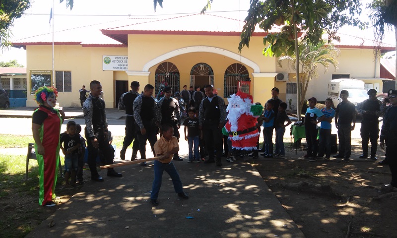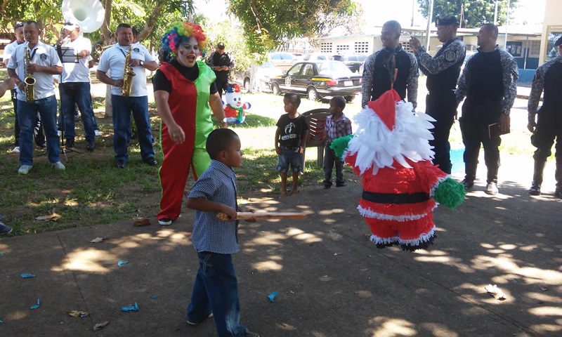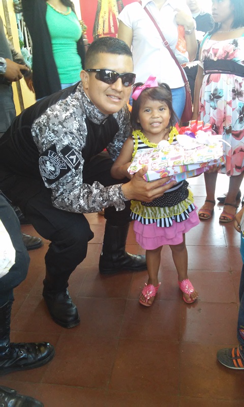 Por cuarto año consecutivo, unidades del Servicio Policial Motorizado “Linces”, de servicios en la zona Policial de Chiriquí, realizaron una fiesta de navidad a los pequeñines del Hogar Maná, ubicado en la comunidad de las Lomas y del área de la curtiembra, de la ciudad de David. El agasajó se realizó en la Subestación Policial de los Motorizados, ubicado en el Barrio Bolívar, donde los chiquitines disfrutaron de golosinas, pastel, juguetes y piñatas. El Evangelista Esteban Batista, inició esta actividad, agradeciendo al Dios Todo Poderoso por mantenernos con vida y salud. La Payasita “Corazoncito” animó este evento con diferentes tipos de juegos, así como el pintar caritas a los presentes. El Teniente Ismael Quintero, ejecutivo de los linces en la provincia, manifestó que con esta actividad se busca compartir con los niños, darles alegría, una sonrisa de amor. |