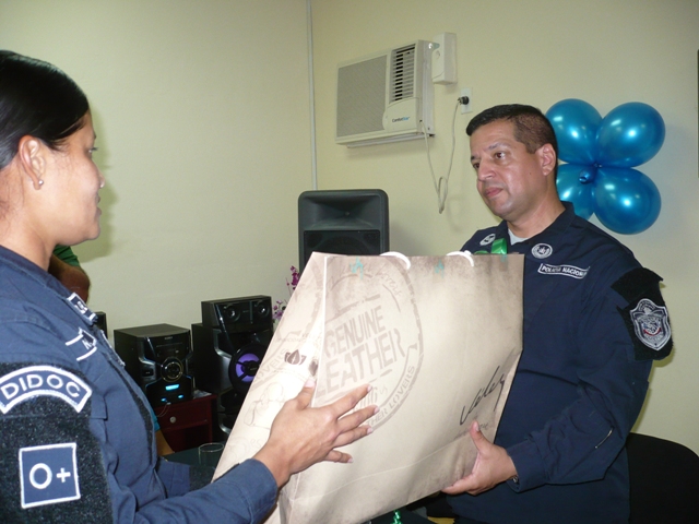 Un brindis sorpresa por el cumpleaños del Comisionado Jorge Escobar, Director Nacional de Docencia de la Policía Nacional, realizaron colaboradores entre personal juramentado y no juramentado de esta dirección. La actividad que se realizó en las instalaciones del Instituto Superior Policial (ISPOL), se aprovechó para cantarles también el cumpleaños al Mayor Francisco Amador, jefe de la Vicerrectoria Académica y del Mayor retirado Francisco Porras, a quienes se le entregó presentes por parte del personal. Al finalizar la actividad los colaboradores agradecieron a Dios por otro año más de vida alcanzado por estos oficiales. |