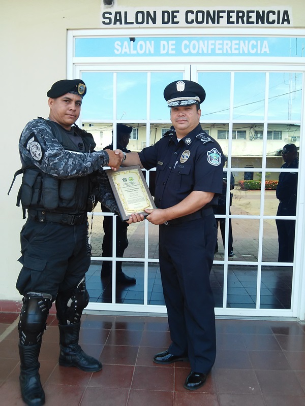 En las instalaciones de la Zona de Policía de Herrera se le realizó reconocimiento a unidades sobresalientes que frustraron un asalto en una joyería en Chitré. En el acto el comisionado Ismael Herrera, jefe de la Zona de Policía de Herrera, entregó un bono y placa de reconocimiento a cada unidad, con la finalidad de incentivar a estas unidades que se esfuerzan en su trabajo por brindar un servicio ejemplar. En el acto fueron premiadas dos unidades el Sgto. 2do. Luis Chavez y Agte. María Pérez, quienes acudieron al llamado de la ciudadanía; aprehendiendo a dos personas e incautando dos armas de fuego.