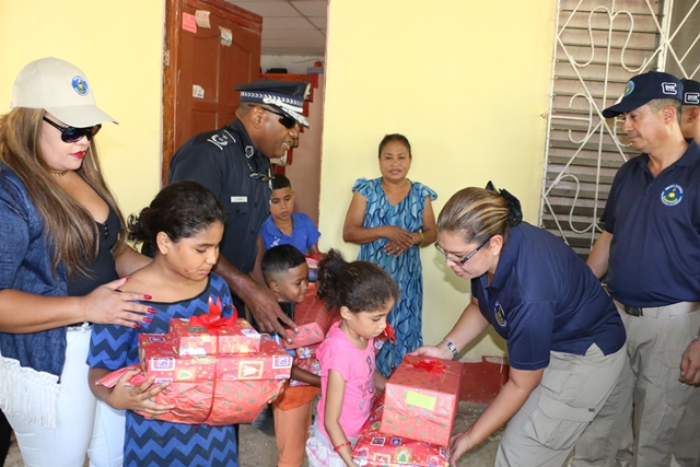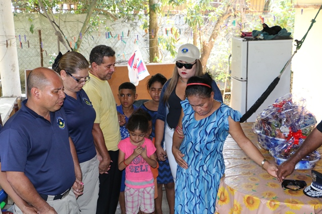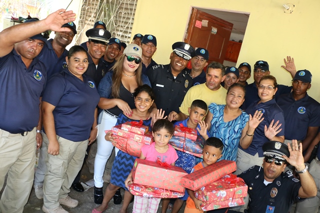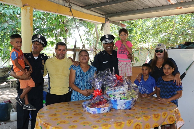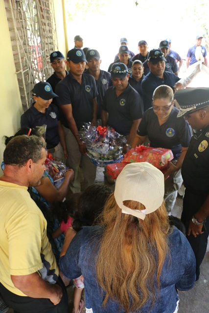Las unidades de la Policía Nacional de servicio en la Dirección Nacional de Armamento y Tiro mostraron su lado afectivo y solidario con una familia necesitada de amor en la comunidad de Veracruz, ubicada a unos 20 minutos de la ciudad capital. La visita fue breve pero emotiva, las unidades compartieron con los niños y sus familiares quienes agradecieron el gesto de desprendimiento hacia ellos en esta época de amor y felicidad. Las unidades, elevaron también una plegaria a Jehová Dios por la oportunidad de hacer feliz a una familia más en estas fiestas de fin de año y de poder contribuir de ésta manera significativa, deseándoles una feliz navidad y un venturoso año nuevo 2016. |