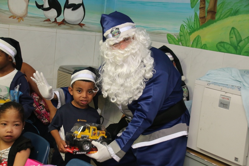 La Navidad llegó por adelantado para los pequeños pacientes del Hospital de Especialidades Pediátricas de la Caja de Seguro Social, quienes recibieron la grata visita de ”Poli Santa Claus”, acompañado por “Polita” y miembros de la Policía Nacional. Las dulces melodías de los villancicos interpretadas por el grupo de Voces y Cuerdas de la Policía Nacional, alegró cada rincón de este hospital, contagiando a todos de la magia decembrina. “Poli Santa” junto a sus ayudantes recorrió diferentes salas en las que entregó obsequios a los niños y niñas, entre otras sorpresas. La alegría dibujada en el rostro de los pequeños y sus padres, es nuestro mejor regalo, dijo la Mayor Mery Palacios, Jefa Administrativa de los Servicios Médicos de la Dirección Nacional de Bienestar Policial. “De esto se trata la Navidad, de compartir, y para nosotros en la Policía Nacional es nuestro mayor deseo” manifestó Palacios. La Mayor Itzel Calles explicó que esta es una época maravillosa de compartir y llevarle amor a los que más lo necesitan. En este caso, nuestros niños. La niñez de Panamá. “Ahorita mismo estamos interactuando con niños que se encuentran con alguna necesidad o en la adversidad, y es por eso que nos hacemos presente, trayéndoles un cariñito a través de canciones de villancicos y regalos”, concluyó Calles. Por su parte, Melisas Guerrero, Doctora Residente del Hospital de Especialidades Pediátricas, indicó que en este evento se proyectó una película y repartieron golosinas, dulces, canastitas y regalos. Dijo que para estos niños que sufren de estrés por sus patologías, al ver que el hospital se puede convertir en un lugar de sano esparcimiento para ellos, definitivamente mejoran su estado de ánimo. Dirigida por el Director General de la Policía Nacional, Omar Ariel Pinzón Marín, la entidad de seguridad lleva a cabo actividades para compartir con la comunidad momentos agradables, llenos de mucha alegría.