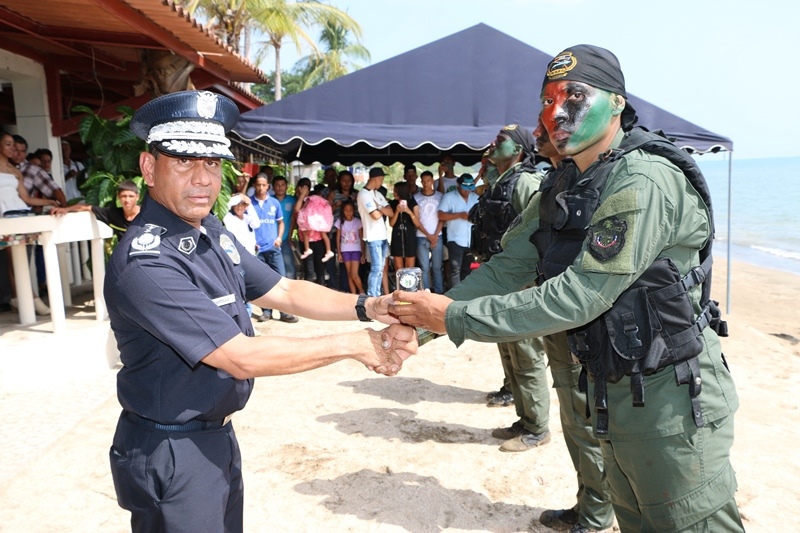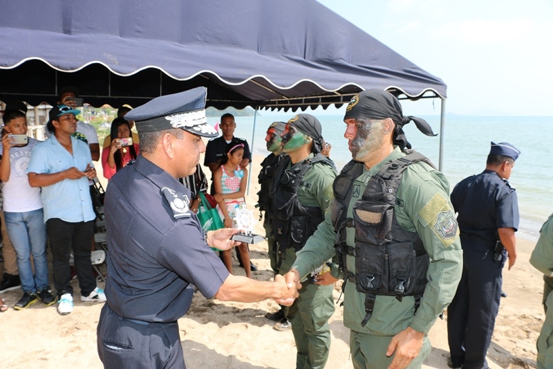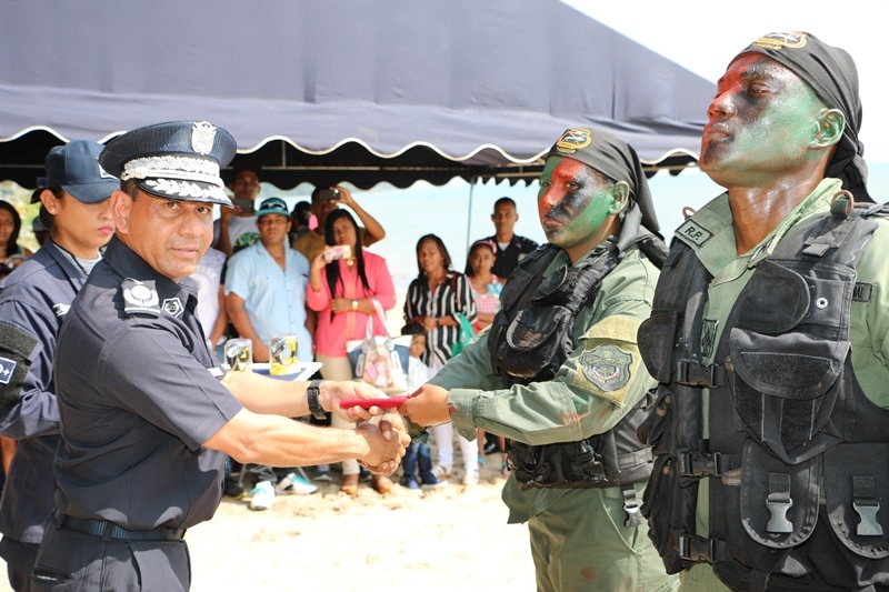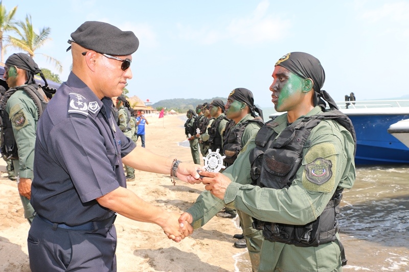 La Policía Nacional celebró la ceremonia de graduación de 36 nuevos operadores profesionales de lanchas patrulleras en el IX Curso denominado “Operadores de lanchas patrulleras”, de la Unidad Táctica de Operaciones Antidrogas (UTOA), entre estos seis nuevos profesionales pertenecen al Servicio de Protección Institucional (SPI), en una actividad que se realizó en playa Veracruz. El curso se enfocó en la familiarización con lanchas patrulleras, planeamiento de operaciones, navegación en litorales fluviales y marítimos, intercepción de embarcaciones, comunicaciones, entre otros ejercicios. Las unidades policiales cumplieron durante tres meses las exigencias del curso para obtener el título. Dentro de la graduación se encuentra una femenina, se trata de la Cabo 2° Amarilis Gómez, la patrullera se destacó obteniendo reconocimiento en la categoría Espíritu de Cuerpo. El primer puesto de honor lo ocupó el Agente Jorge Rodríguez, el segundo fue para el Subteniente Moisés Gutiérrez, y el tercer lugar lo obtuvo el Cabo 1° Wilfredo Córdoba. Estos nuevos técnicos profesionales de policía hombres y mujeres, saldrán a reforzar, los operativos que realiza la institución en diversos puntos del país. El evento fue presidido por el Subdirector operativo de la Policía Nacional Javier Castillo, Comisionado Luís Rodríguez jefe de la Unidad de Fuerzas Especiales Contra Terrorismo (UFEC), además de miembros del Directorio de la Policía Nacional, al igual que los familiares de los graduados. La Policía Nacional continúa promoviendo entre sus unidades policiales el entrenamiento especializado necesario para planear y ejecutar con seguridad y eficacia operaciones de lanchas patrulleras en litorales fluviales y marítimos en apoyo a operaciones de anti-terrorismo, y anti-narcóticos. Al finalizar la ceremonia de graduación, se realizó un ejercicio de patrullaje fluvial para asegurarse que se han cumplido los objetivos del curso. |