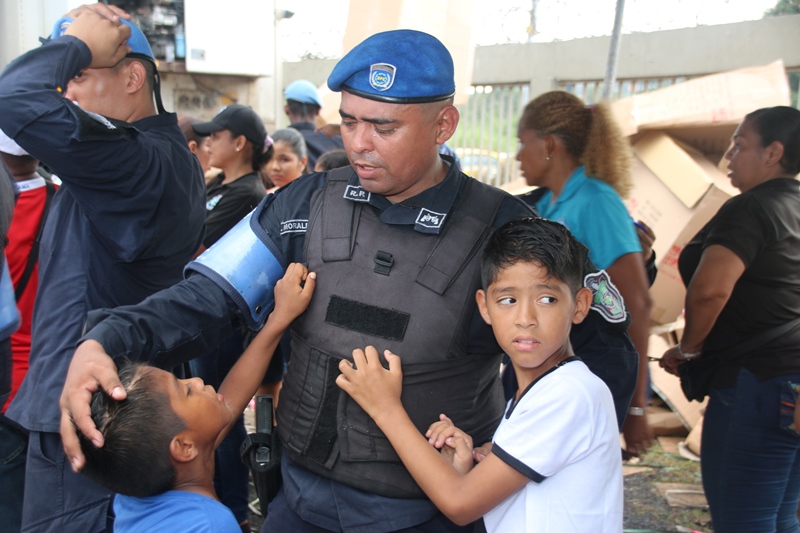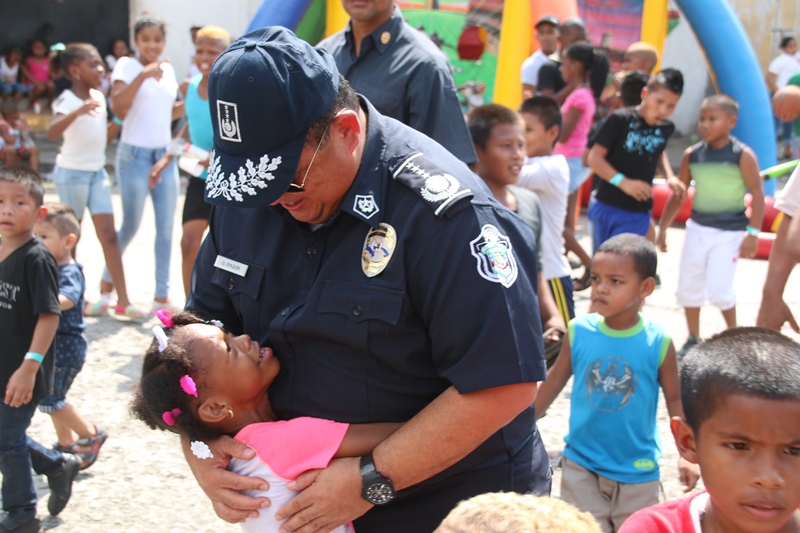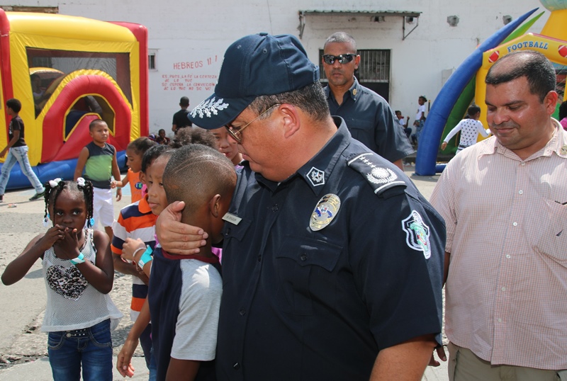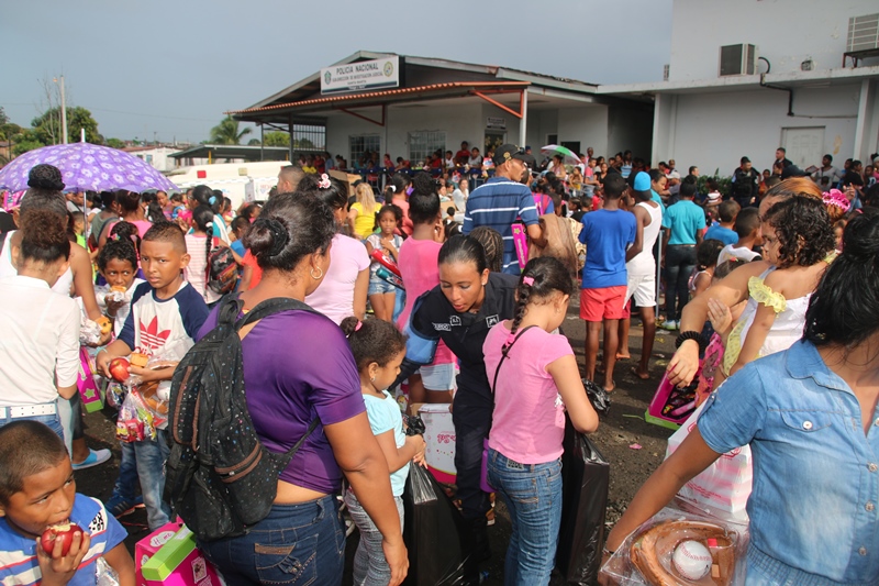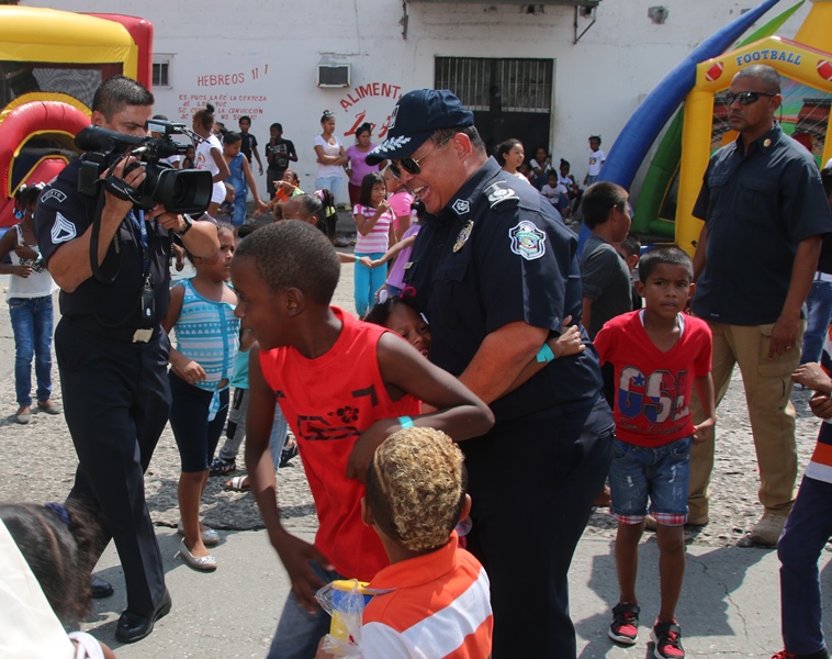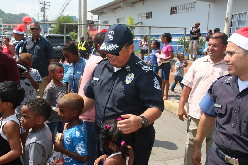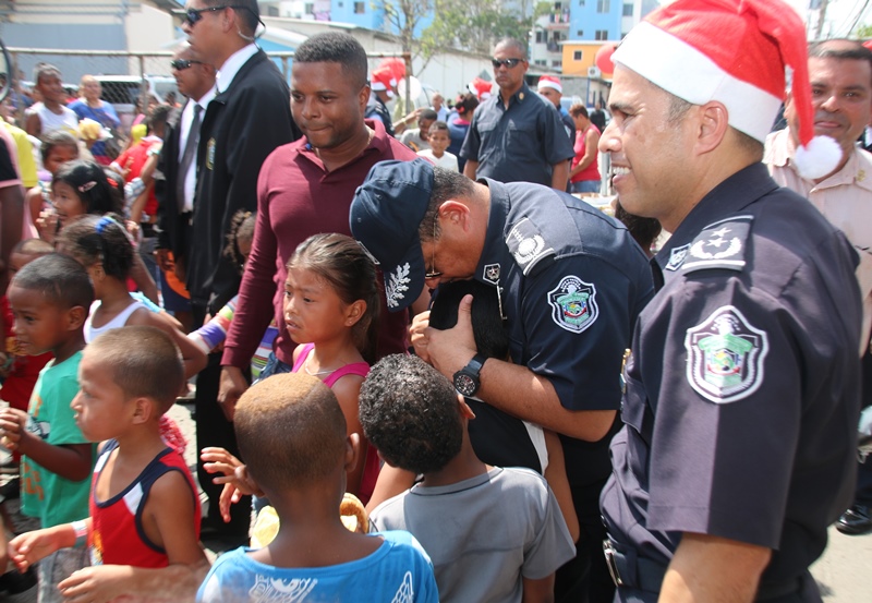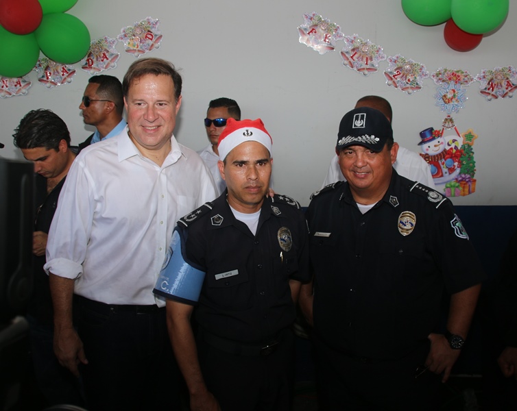 Mucha emoción vivieron los niños del corregimiento de El Chorrillo, Curundú y el distrito de San Miguelito con la visita sorpresa del excelentísimo señor Presidente de la República, Juan Carlos Varela junto al Director de la Policía Nacional, Omar Ariel Pinzón y las unidades de la Unidad Preventiva Comunitaria, quienes compartieron un rato ameno con estos pequeñines. Los niños recibieron regalos, se divirtieron con los payasos, brinca brincas, pinta caritas, así como la entrega de juguetes como patinetas, bicicletas, juegos de té, muñecas y un sinfín de diversiones para todos los niños. El Presidente de la República Juan Carlos Varela dijo estar muy contento de compartir con estos niños y la Policía Comunitaria, un modelo de policía que se va expandirá en la provincia de Colón y en David, para integrar la comunidad con la Fuerza Pública. Añadió que para estos niños lo más importante es que se mantenga en el sistema educativo, por lo que ya se le ha suministrado becas, se ha construido canchas deportivas y dado seguimiento cuando están mayores para que sean insertados en el mercado laboral. Por su parte, el Director General, Omar Pinzón definió la actividad como una fiesta de la Policía con su comunidad y de los niños que están integrados en los diversos programas de seguridad ciudadana y convivencia pacífica. “Hemos recibido ese respaldo del excelentísimo Señor Presidente Juan Carlos Varela, dándonos la oportunidad de repartir regalos a través de su despacho, llevando la alegría a estos niños en una época de cambios donde todos sepan que el estudio y la sana convivencia nos lleva a obtener un mejor futuro”, concluyó Pinzón.