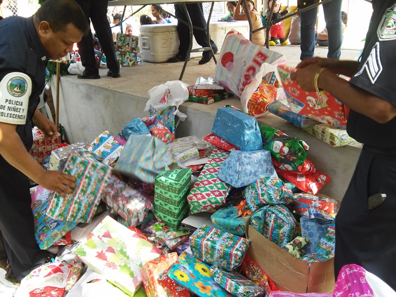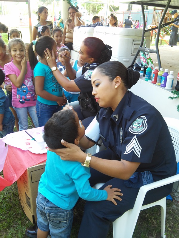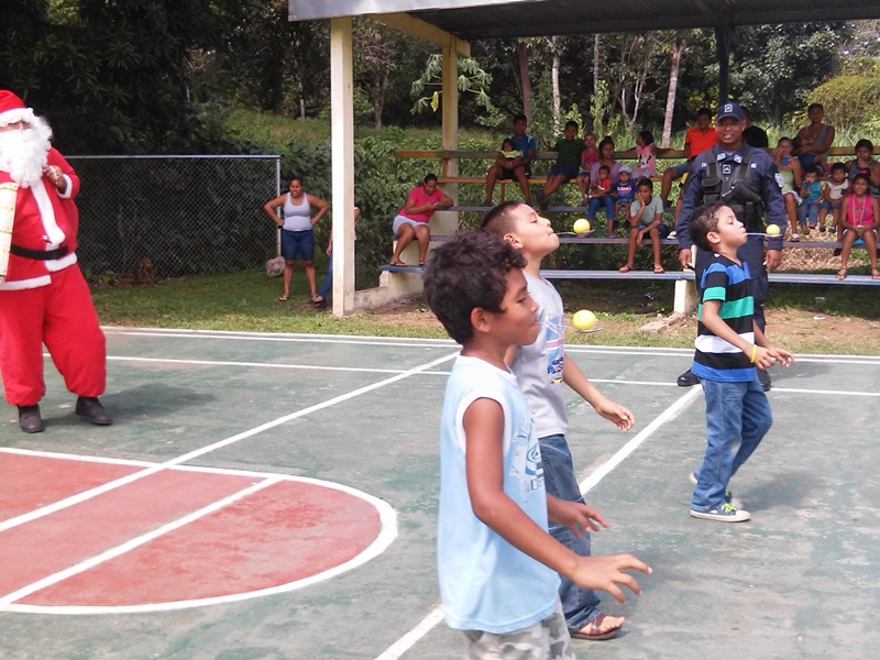 Una mañana llena de alegría compartieron niños y niñas del sector de Huile en el corregimiento de Santa Clara, distrito de Arraiján, cuando una delegación de la Treceava Zona de Policía, encabezada por los Comisionado Luis Navarro y José Flores, junto a Santa Claus. En horas de la mañana, llegó el bus policial al parque de la comunidad de Huile cargado de juguetes donados por cada policía de su distrito. El rostro de cada niño se iluminó de alegría, satisfacción y agradecimiento al ver a las unidades transportando las cajas. Allí distribuyeron dulces, comidas, refrescos, piñatas, además hubo competencias con cucharas y carreras, pinta caritas y se le brindó cortes de cabellos. La señora Emperatriz García agradeció a la Policía en nombre por el gesto que han tenido con ésta comunidad. |