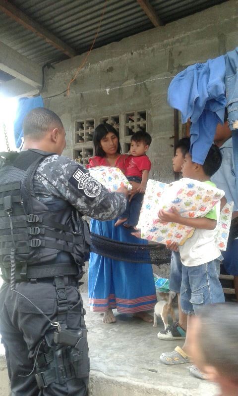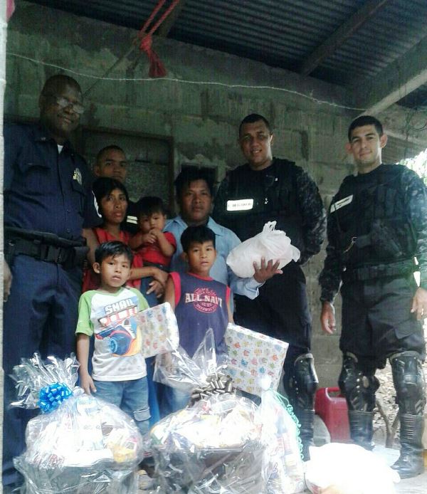Una verdadera sorpresa se llevó la familia Montero residentes en un sector de difícil acceso en Playa Leona distrito de La Chorrera, al recibir la visita de las unidades de la Policía Nacional de servicio en la Unidad Motorizada “Linces” de servicio en la 10ma. Zona Policial de Panamá Oeste. Las unidades llegaron a la residencia de esta humilde familia, con canastas de comida y juguetes a los niños quienes estaban sorprendidos con esta maravillosa acción de los uniformados. El encargado del servicio motorizado Capitán Delgado, dijo que con esta acción solidaria, buscan llevar un poco de felicidad y amor a esta humilde familia que en esta navidad no tenían nada para llevar a la mesa y mucho menos para dar a sus hijos. El señor Franklin Montero padre tres niños y su esposa manifestaron su sincero agradecimiento a las unidades policiales. “Definitivamente Dios condujo a los linces a mi humilde hogar a llevar alegría en estos momentos que estamos pasando por problemas económicos” destacó.
