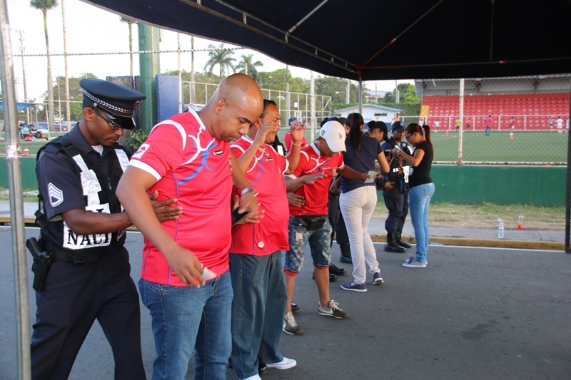 Más de 400 unidades de la Policía Nacional estuvieron brindando seguridad en el perímetro del estadio Rommel Fernández, donde se desarrollaban los partido de Panamá-Cuba y Trinidad Vs Haití, el pasado viernes 8 de enero. Los uniformados prestaron vigilancia hasta que finalizo el último encuentro, previendo que todo se desenvolviera en normal paz y tranquilidad, sin alteración a su normal desarrollo. |