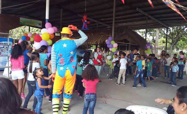 Niños y niñas, hijos de miembros juramentados y no juramentados que laboran en la Zona Policial de Coclé, disfrutaron de un agasajo sorpresa que este viernes 8 de enero, les ofreció la Policía Nacional en celebración del Día de Reyes Magos. Los pequeños se divirtieron hasta más no poder con las ocurrencias de los payasos, juegos inflables, se deleitaron con golosinas y recibieron juguetes. El Comisionado y jefe de la Zona Policial, Aníbal Prados dijo que estas actividades forman parte de los programas que desarrolla la Policía Nacional por el bienestar de sus miembros, fortaleciendo los lazos familiares. |