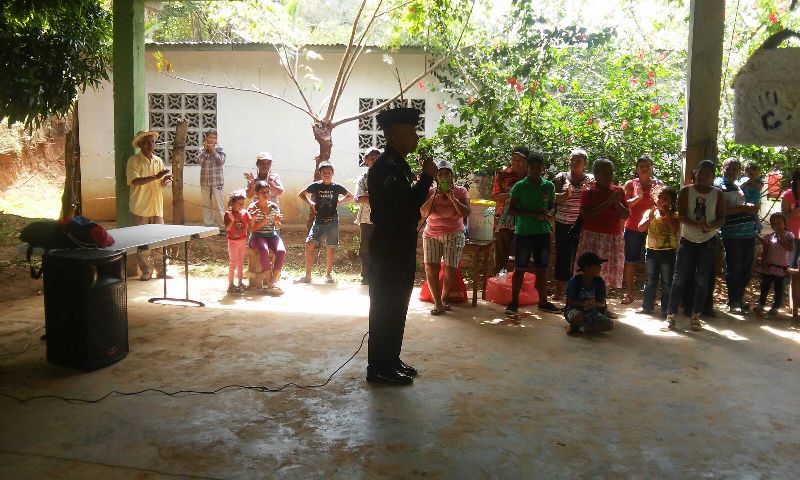 Moradores de la comunidad de El Calabazo #2, en el distrito de la Pintada, provincia de Coclé, fueron capacitados sobre la práctica de valores en la familia por parte de efectivos del Departamento de Seguridad Ciudadana de la Policía Nacional. Mientras que los niños también participaron de un pequeño agasajo, en el cual disfrutaron junto a sus familiares de un brindis que incluyó piñatas y dulces, entre otras sorpresas. Los moradores de esta comunidad agradecieron a los uniformados por las orientaciones recibidas que serán de gran aporte al desarrollo integral de todos, y de paso ofrecer a los pequeños momentos agradables. Con estas actividades la Policía Nacional estrecha sus lazos con la comunidad, reforzando los valores en la familia como pilar de la sociedad. |
