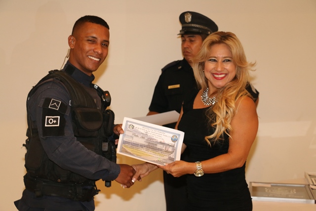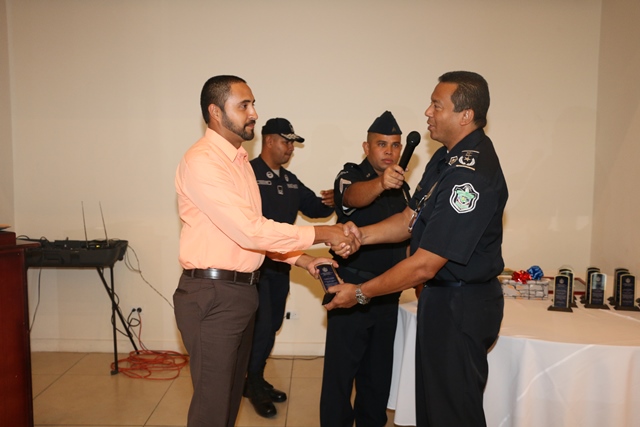 El arduo labor de las unidades de la región policial de los distritos de Chame y San Carlos y el apoyo de autoridades locales y empresarios fueron reconocidos este miércoles 13 de enero, durante la “Rendición de Cuentas” del área policial C y D (Chame y San Carlos). En esta rendición de cuentas dirigida por el Mayor Leslie Howard, jefe del área policial de Chame y San Carlos; en presencia del jefe de la Zona de Policía de Panamá Oeste, Gilberto Samaniego; Carlos Delgado nuevo jefe de la 19ava Zona de Policía de Capira, Chame y San Carlos, además de invitados especiales. Howard explicó ante empresarios, autoridades locales, miembros de programas de seguridad ciudadana y unidades policiales el trabajo que se realizó en las zonas residencias y playeras de estas regiones del país, con lo que se logró disminuir los delitos hasta un 90%. Destacó la importancia que representa para la Policía Nacional el apoyo que brinda la ciudadanía para lograr el objetivo de brindar seguridad a los panameños, al tiempo que agradeció la colaboración constante. Por su parte, el nuevo jefe de la 19ava Zona de Policía, Carlos Delgado resaltó la labor realizada por el Mayor Howard en estas regiones de trascendental importancia para el país, por ser área playera y turística. Delgado agradeció al Director General de la Policía Nacional, Omar Ariel Pinzón la designación y anunció que seguirá trabajando en pro de la seguridad de la ciudadanía como ha sido la misión de la primera institución de seguridad. En esta actividad se entregó reconocimientos y placas para las unidades que entregan su tiempo para brindar seguridad a la ciudadanía; empresarios y autoridades locales por el apoyo brindado a la Policía Nacional. Se le entregó un obsequio especial al niño Josué Lasso, residente en esta área del país, quien había solicitado un apoyo a la Policía Nacional de esta área.