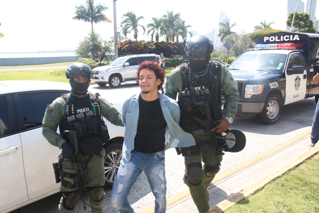Tras una operación de inteligencia y seguimiento, unidades de la Policía Nacional de servicio en el “Bloque de Búsqueda” y funcionarios de la Fiscalía Auxiliar de la República, lograron la detención de Christian Campbell Pinzón (a) “Omi”, sindicado por delitos de contra la vida e integridad personal, entre otros. “Omi” fue detenido este viernes 15 de enero en la Cinta Costera, en la Avenida Balboa donde pretendía darse a la fuga tras percatarse que era seguido por unidades de la Policía Nacional en horas del mediodía de ayer. El subdirector General Operativo, Javier Castillo estuvo en el lugar y destacó el trabajo de inteligencia realizado por las unidades, para lograr la recaptura de este prófugo de las autoridades, desde hace siete meses. Castillo dijo que esta labor es producto del arduo trabajo de las unidades de la Policía Nacional dirigida por el Director Omar Ariel Pinzón Marín y gracias a la colaboración de la ciudadanía. El Fiscal Auxiliar de la República, Marcelino Aguilar manifestó que esta operación de recaptura es producto del esfuerzo conjunto de la Policía Nacional y el Ministerio Público, para darle respuesta a la comunidad. Al momento de su captura a Campbell se le encontró un armas de fuego calibre 9 mm, con su respectivo cargador y un chaleco antibalas, mientras que dentro de un auto Hilux, color negro, en el que viajaba junto a otro sujeto quien en estos momentos es investigado, también fue hallada otra arma de fuego. “Omi” logró evadirse de la cárcel de Tinajitas el 3 de noviembre de 2012, siendo recapturado al año siguiente en una residencia en Arraiján. El 23 de octubre de ese mismo año se fugó de la penitenciaría de La Chorrera, siendo recapturado el 6 de diciembre en Herrera. Mientras que el martes 16 de junio del año pasado se evadió de la Cárcel La Joyita, siendo recapturado en enero del 2016. |