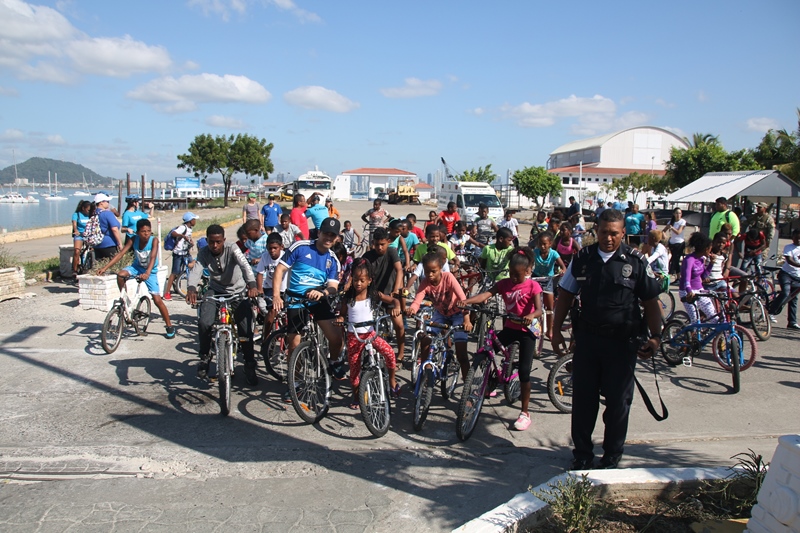 La Policía Nacional a travez de la Unidad Preventiva Comunitaria (UPC), realizó una vuelta ciclista en la Calzada de Amador, como parte del programa de “Verano Feliz”. Un total de 57 niños residentes en el corregimiento de Curundú, fueron trasladados desde la sede la UPC hasta Isla Perico acompañados por los uniformados y miembros de la Asociación Cristiana de Jóvenes. Ya listos, salieron de manera ordenada disfrutando del paisaje marino hasta llegar a la meta en el Biomuseo. El subcomisionado y Jefe de esta unidad, Luis Ortiz explicó que con este tipo de actividad se busca que los niños compartan en un ambiente de sana convivencia, hacer nuevas amistades y reforzar valores. Culminado el recorrido, los uniformados les ofrecieron a los niños un brindis reunidos en grupos para degustar y a conversar acerca de la actividad que se había realizado. La Policía Nacional continuará realizando este tipo de acciones para ofrecerle a los niños actividades cuturales y recreativas durante el tiempo de vacaciones.