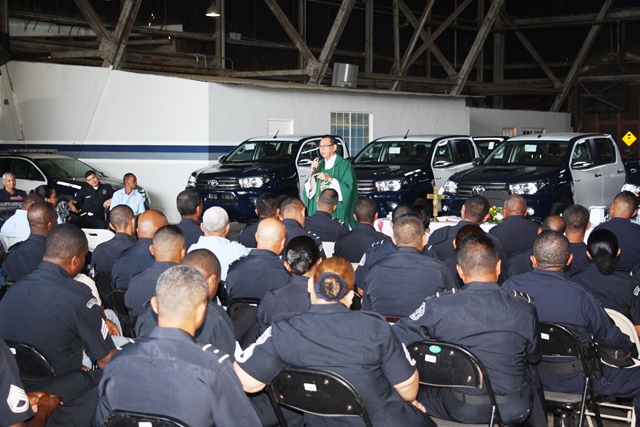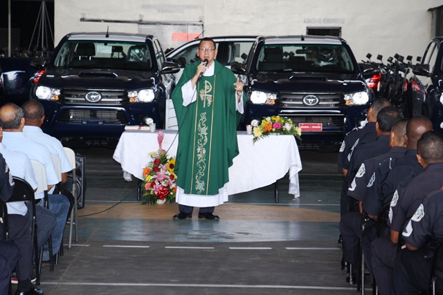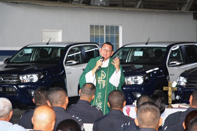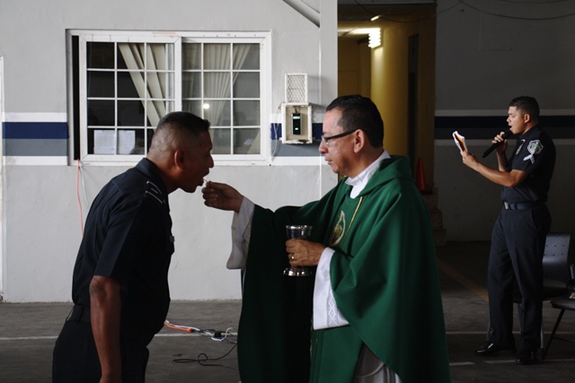 Personal juramentado y no juramentado de la Dirección Nacional de Transporte y Mantenimiento de la Policía Nacional elevaron una plegaria para dar gracias por las bendiciones recibidas, durante una ceremonia religiosa celebrada en sus instalaciones. Durante la ceremonia religiosa, que se realizó en horas de la mañana de este viernes 22 de enero del 2016, el capellán de la Policía Nacional, Edgar Flores, evocó la fe en Dios como pilar en nuestras vidas, a la vez hizo un llamado a reflexionar sobre nuestras actitudes para que la labor diaria a favor de la comunidad se realice de manera correcta y apegada a la ley. Con estas actividades la Policía Nacional promueve la fe en Dios, necesaria para alimentar el espíritu y alma que fortalecen la vocación de servir a los demás. |