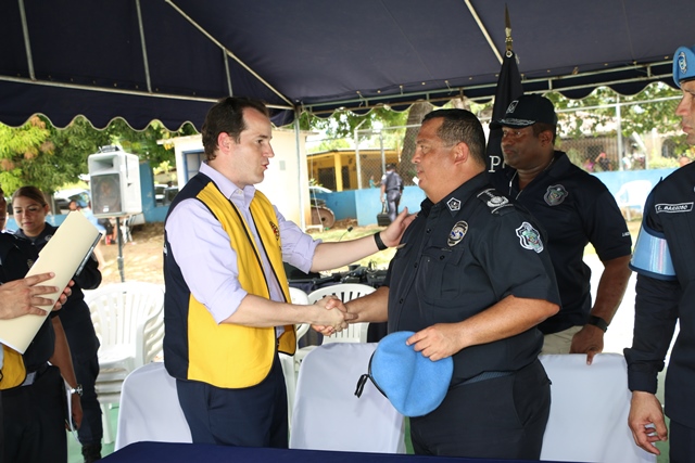 El Director General de la Policía Nacional, Omar Ariel Pinzón Marín firmó un convenio con el Club Activo 20-30 con la finalidad de que la entidad de seguridad disponga del uso de estas instalaciones, para actividades con la comunidad. El Licenciado Eynar Samudio, Presidente del Club Activo 20-30 estampó su firma al igual que el Director General de la Policía Nacional, para beneficio de los niños y jóvenes chiricanos, quienes desde el jueves pasado iniciaron en estas instalaciones la Liga de fútbol Sub-17 “Convivencia Pacífica”. Pinzón Marín agradeció a los miembros del Club 20-30 el desprendimiento que les permitirá llevar a cabo actividades deportivas, donde la Unidad de Prevención Comunitaria trabaje de cerca con la barriada San José y áreas aledañas y que sirva de faro de esperanzas y de comunicación. Por su parte, Eynar Samudio, Presidente del Club Activo 20-30 agradeció a la Policía Nacional por ser un patrocinar importante en la Teletón al nivel Institucional. Este convenio busca combatir el ocio a través del deporte, brindando una esperanza a muchos niños. Este complejo deportivo cuenta con una cancha de softbol, béisbol, basquetbol, fútbol y una piscina olímpica.
