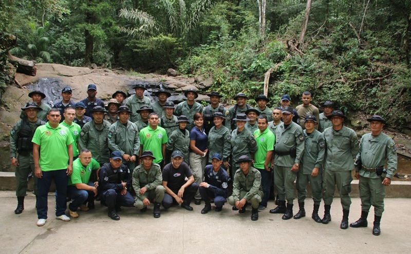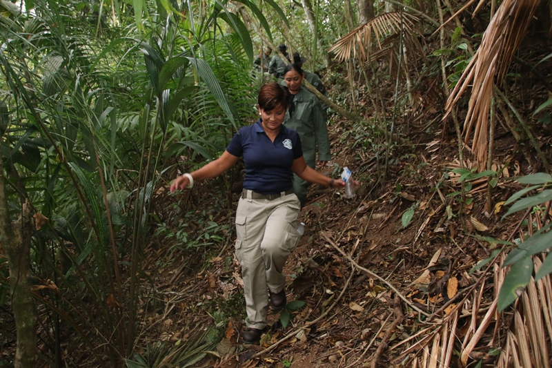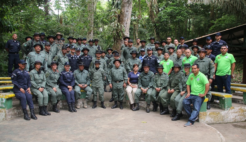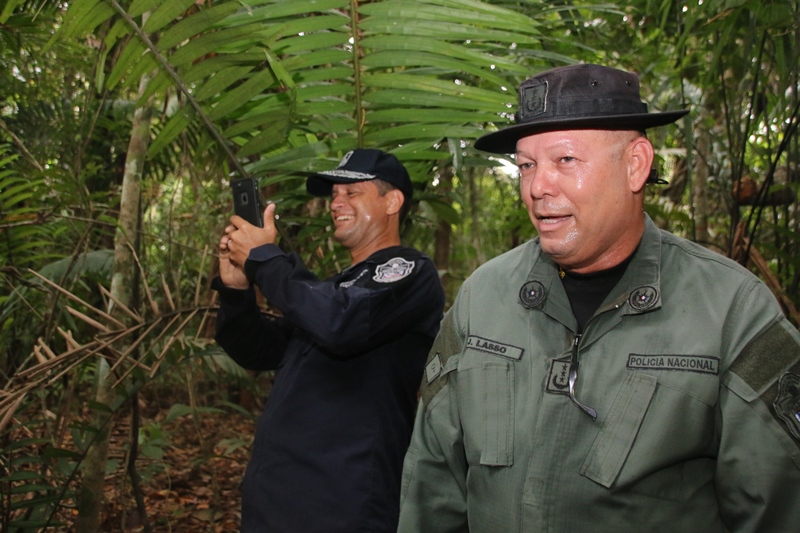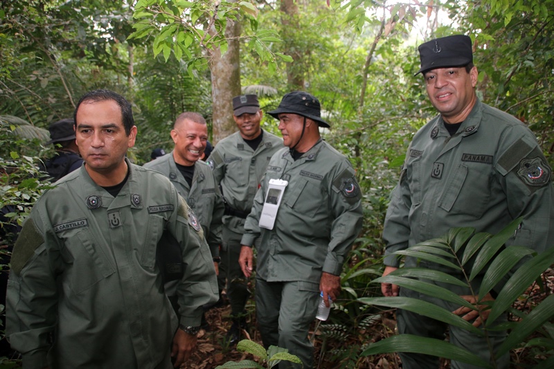 Un recorrido de 3.5 kilómetros desde el camino de plantaciones hasta el sendero natural El Charco, fue la ruta trazada por miembros del Directorio de Policía Nacional en celebración del primer aniversario de la Dirección Nacional de Policía Ecológica (DINPE). Durante este recorrido los participantes apreciaron una muestra representativa del bosque tropical que alberga el Parque Nacional Soberanía. Cumplida la meta, disfrutaron de un ameno desayuno en la hermosa caída de agua de El Charco, rincón natural bordeado por el río Sardinilla, que está dentro del parque Soberanía, en dirección hacia la comunidad de Gamboa a orillas del Canal de Panamá. Y es precisamente, contribuir a proteger este patrimonio natural una de las tareas de la Policía Ecológica que en coordinación con la Autoridad Nacional de Medio Ambiente, patrullan una extensión de 22 mil 104 hectáreas, donde viven más de 100 especies de animales y una variedad de mil 300 especies de plantas. La comisionada y jefa de la Dirección Nacional de Policía Ecológica, Elsa Garzón dijo que además de conocer este parque a través del senderismo ecológico, también es afianzar el trabajo en equipo. Garzón destacó la importancia de trabajar conjuntamente con la comunidad para la preservación de este santuario que anualmente atrae a excursionistas nacionales y extranjeros, además de otras áreas protegidas de la geografía panameña. Las unidades de DINPE también dictan charlas en escuelas y comunidades donde se les enseña a los niños y adultos a cuidar y convivir con la naturaleza. Aunque tienen más de 20 años de existencia al servicio del medio ambiente, la Policía Ecológica cumple un año de ser una dirección, a lo que se ha destinado más recursos y capacitaciones para el fortalecimiento de su labor de proteger la flora y fauna de nuestro país. Los policías ecológicos debidamente capacitados patrullan vía terrestre y acuática las áreas protegidas en conjunto con diferentes organismos gubernamentales y no gubernamentales, buscando minimizar la caza ilegal, tala indiscriminada, la contaminación de las aguas, quemas y el rescate de especies en extinción. También supervisan que el público no tire desechos en las áreas protegidas, teniendo en cuenta que existen materiales que no son biodegradables y que alteran el equilibro ecológico de la zona.