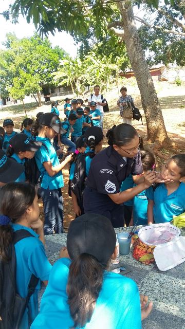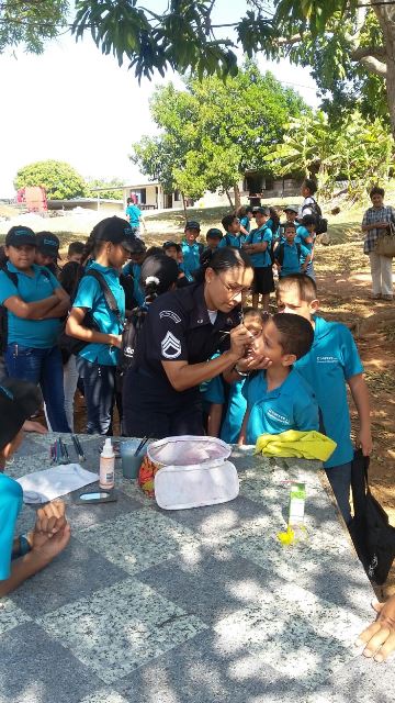 Hijos de los socios de la cooperativa COOPEVE R.L. capitulo de Herrera, realizaron una visitaron las instalaciones de la Sexta Zona de Policía de Herrera, en este "Verano Feliz". Con sus caritas pintadas, reflejaban su alegria y compartieron con el personal policivo diversas experiencias de acuerdo a sus especialidades. |