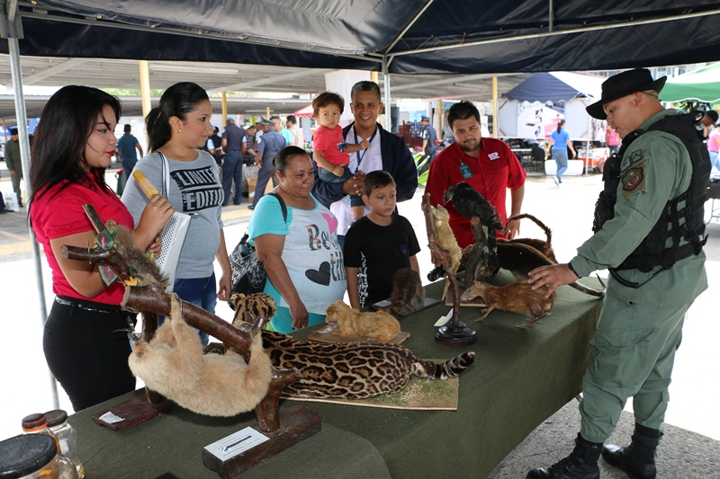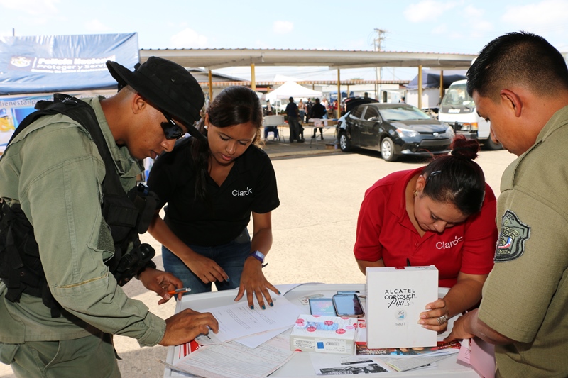La Policía Nacional a través del Grupo Apoyo al Servicio (GAS), realizó este viernes 29 de enero de 2016, una feria diversificada en su sede ubicada en el corregimiento de Ancón. La feria contó con la participación del personal juramentado y no juramentado, quienes adquirieron productos de primera necesidad, como: arroz, frutas, vegetales entre otros. Esta iniciativa contó con la participación de la Policía de Niñez y Adolescencia, quienes recibieron a los niños con pinta caritas y brinca brinca y obsequios, la D.N.O.T brindó charlas de educación vial y dieron un paseo en moto, asi como también se contó con la presencia de empresas como PRICESMART, EDITORIA PLIDEL, S A. entre otras. Para el comisionado Gustavo Cogley jefe de este grupo, el objetivo de la feria es que las unidades y sus familiares pudieran disfrutar con su familia de los productos que se brindan La Policía Nacional interesada en el bienestar familiar de sus unidades, continuará llevando a cabo este tipo de actividades donde se ofrecen productos de calidad y a bajos precios.