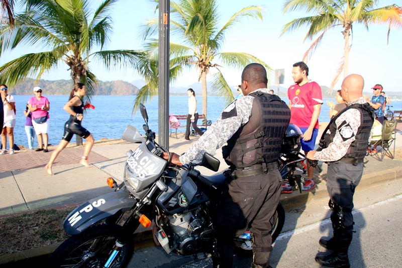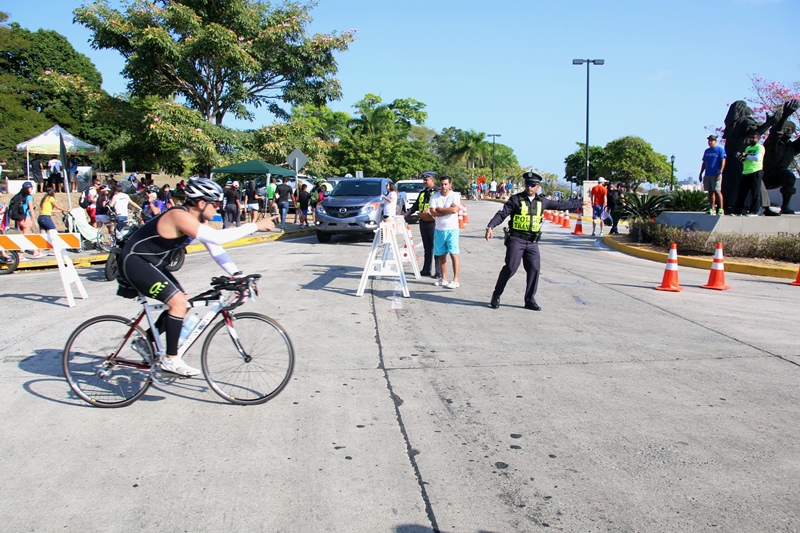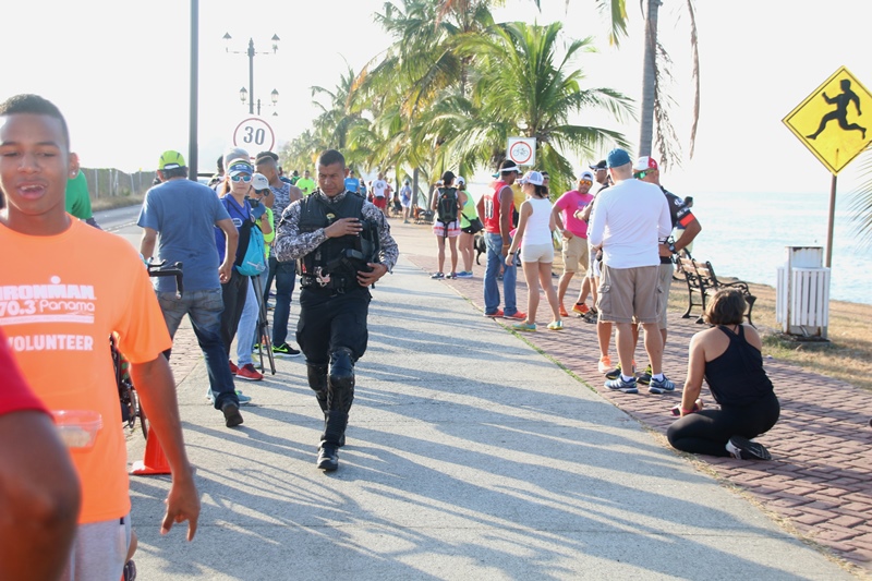 Unidades de la Policía Nacional participaron en el Iroman 70.3 Pan American Pro Champioship, Panamá, en donde participaron triatletas de diferentes partes del mundo. El agente Samuel Smith, participó en el recorrido de 1.9 kilómetros en natación, siendo relevado por el agente Walter Hernández, quien realizó el recorrido de 90 kilómetros en bicicleta y por último el agente Julio Clark realizó 21.1 kilómetros en atletismo. Omar Ariel Pinzón Marín, Director Nacional de la Policía Nacional, estuvo presente en este evento, dándole apoyo a las unidades que se encontraban participando. La Policía Nacional además de participar, brindo seguridad tanto nacionales como a extranjeros quienes se encontraban presentes en esta actividad, así como también la seguridad en las vías por parte de las unidades de tránsito mientras se realizó el evento. |