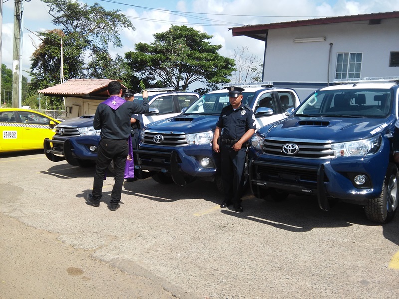 Con la asignación de cinco nuevo vehículos y 8 motos, la Policía Nacional reforzó la flota vehicular en el distrito de Arraiján. Antes de la entrega del nuevo equipo rodante, el Padre Luis Alfredo Parra, ofició las palabras de reflexión y bendijo los carros y motos policiales. Posteriormente el Comisionado Luis Navarro, Jefe de la Treceava Zona Policial, hizo entrega de las llaves de los carros a los conductores designados a las cuatro áreas y a la Policía de Niñez y Adolescencia. El Comisionado Navarro, indicó que con la adquisición de los nuevos vehículos tipo pick-up, doble cabina y las 8 motos, la Policía Nacional reforzará la vigilancia vehicular en todo el distrito y garantizará la seguridad a más de 300 mil habitantes. |