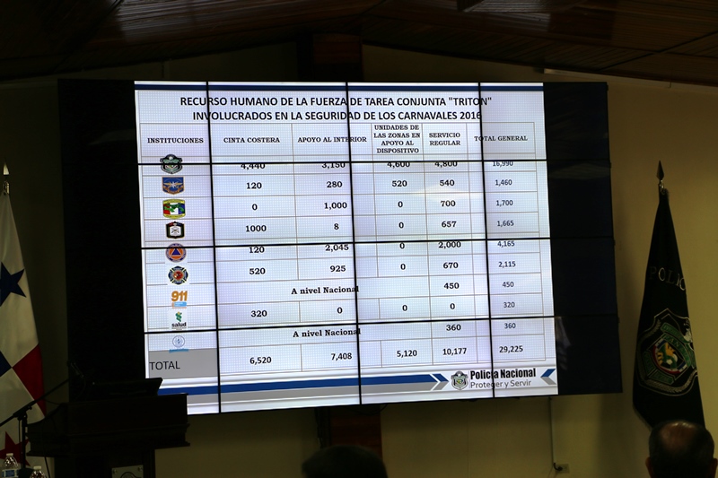 En el marco del Consejo de Seguridad Nacional realizado este lunes en la sede de la Policía Nacional los integrantes de la Fuerza de Tarea Conjunta (FTC) presentaron al presidente Juan Carlos Varela los detalles del operativo de seguridad "Triton, Verano Seguro 2016" que se implementará a partir de este viernes 5 de febrero y donde participarán 29,225 unidades de los estamentos de protección para garantizar la seguridad en los carnavales 2016. En la reunión en la que también estuvieron presentes los ministros de Seguridad, Gobierno, Salud y Miambiente, Rodolfo Aguilera, Milton Henríquez, Francisco Javier Terrientes y Mirei Endara se detalló que a nivel nacional se contará con 38 puntos de prevención, de los cuales 17 funcionarán las 24 horas. Además, en los operativos se utilizarán 64 vehículos y 191 motos. Antes del viernes se espera contar con 21 motos más para reforzar los operativos de seguridad y prevención. El próximo miércoles en conferencia de prensa se presentarán los detalles del operativo de carnaval. También como medida de prevención ante una eventual falta de agua potable, el mandatario autorizó la compra de 20 mil botellas de agua que estarán en las estaciones de la Policía Nacional para ser distribuidas a la población de ser requerido. En 2015 según cifras oficiales durante los carnavales se desplazaron hacia el interior del país 156, 256 personas. |