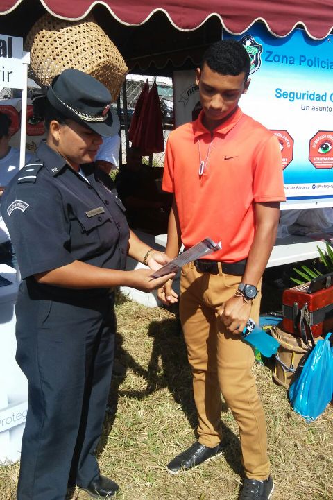 Unidades la 2da Zona Policial participaron en la feria " Verano Aéreo Tour 2016", realizada en el Aeropuerto de Penonomé, donde hubo exhibición de distintos tipos de aeronaves, demostraciones de ultraligeros, paracaidismos, aeromodelismo y aeronaves controladas a distancia. En esta actividad, estuvieron presentes unidades de Niñez y Adolescencia, Seguridad Ciudadana, Policía Cristiana, Reclutamiento, Dirección Nacional de Operaciones del Tránsito, Unidades de la Murga de la Policía Nacional, también nos acompañó el Grupo Juvenil Canino (GRUJUCAN). La ocasión fue propicia para que unidades del Departamento de Reclutamiento, Seguridad Ciudadana y Dirección Nacional de Operaciones del tránsito, brindaran asesoramiento e información a jóvenes y demás visitantes. Hablaron de la oportunidad que ofrece la institución de Seguridad, así como también medidas preventivas y de seguridad vial entre otras, mientras que los más pequeños gozaron de los algodones de azúcar y las palomitas de maíz y libros de pintar con mensajes educativos entre otros. |