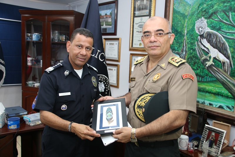 El General de la Policía Nacional de Perú Mario Alzamora Vallejo visitó las instalaciones de la Policía Nacional de Panamá, ubicada en el corregimiento de Ancón. Alzamora Vallejo fue recibido por el Subdirector de la Policía Nacional, Javier Castillo donde hablaron y le entrego algunos reconocimientos y obsequios de parte del Director de la Policía Nacional Omar Ariel Pinzón. El motivo de la presencia del general Mario Alzamora quien es el director de Asuntos Internacionales de la Policía Nacional de Perú, fue para hacer entrega formal de una condecoración hacia el Director de la Policía Nacional Omar Ariel Pinzón Marín. |