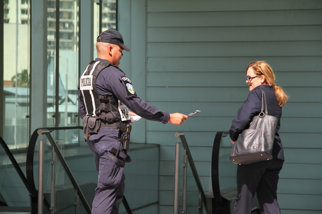 La Policía Nacional a través de unidades de la Dirección de Investigación Judicial (DIJ) y del Metro de Panamá, llevaron a cabo esta tarde una jornada de volanteo, en la 5 de Mayo y la Peatonal brindando consejos de seguridad previo a los carnavales. Esta acción busca primeramente mantener acercamiento con la ciudadanía y así ofrecerles de la mano, tips preventivos contra los delitos de mayor incidencia registrados en años anteriores para esta fecha. Su integridad física es nuestra prioridad, ayúdenos a protegerlos, denuncie cualquier delito a la línea de la Policía Nacional 104 y a los números 512-2222/512-2265.