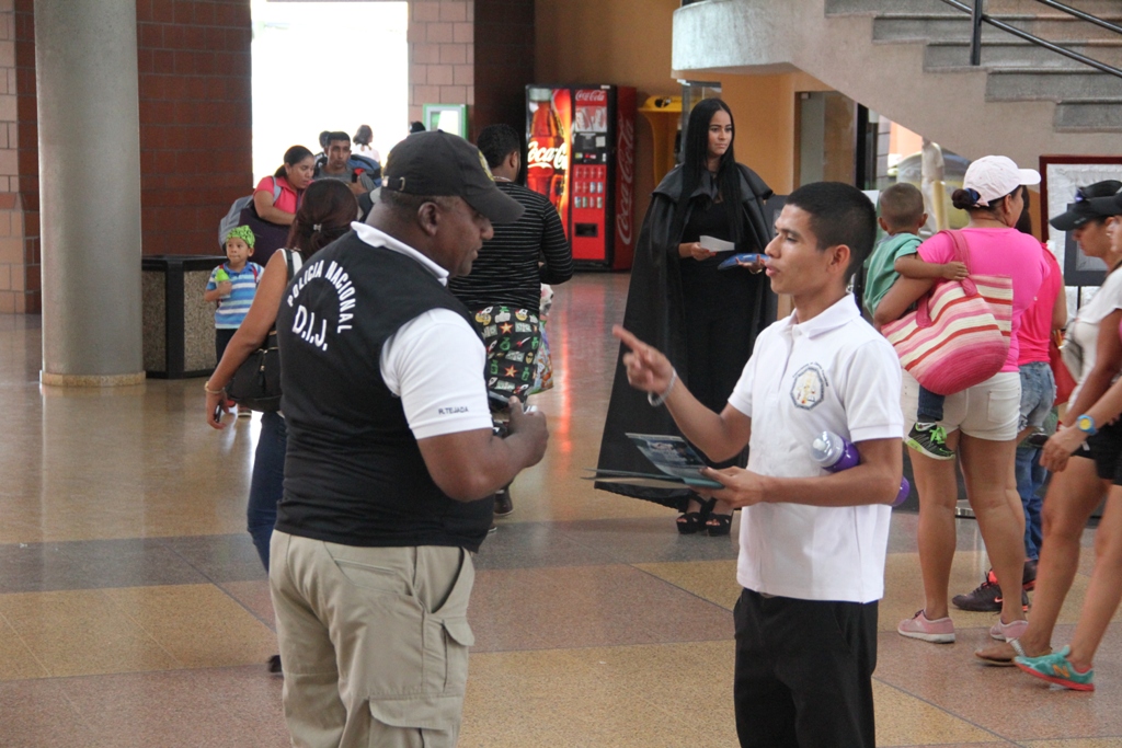 Por segundo día, la Policía Nacional a través de unidades de la Dirección de Investigación Judicial (DIJ), realizaron una jornada de volanteo previo a los carnavales. Esta vez en la Gran Terminal de Transporte de Albrook, donde brindaron consejos prácticos y preventivos contra los delitos de robo y hurto. La acción consecutiva de las unidades de investigación busca crear conciencia en los ciudadanos, para que éstos tomen las medidas de seguridad al momento de salir de casa y ausentarse por mucho tiempo. Estas estrategias preventivas llevadas a cabo por la Policía Nacional, son encabezadas por el Director General, Omar Ariel Pinzón Marín, y dictadas por el titular de seguridad Rodolfo Aguilera en apego a las políticas de seguridad que emanan del Presidente de la República, Juan Carlos Varela Rodríguez, con el propósito de trabajar de la mano con la comunidad y combatir juntos los hechos delictivos. |