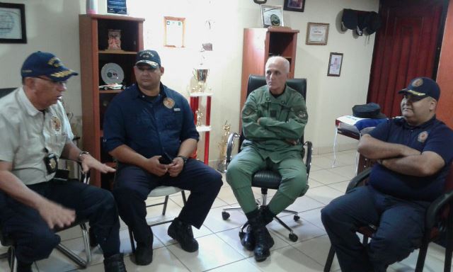 El Comisionado Franck Pinilla De León, Jefe de la 7ma Zona de Policía de Los Santos en compañía del Asesor Legal de la Zona, Licenciado Gustavo de Arco, se reunió con funcionarios del Benemérito Cuerpo de Bomberos, Dirección Nacional de Seguridad Penitenciario para coordinar medidas de seguridad para esta fecha. En esta reunión estaban presentes el Coronel Gabriel Isaza, subdirector General del Cuerpo de Bomberos; Mayor Juan De Arco, Subdirector Nacional del DINASEPI; el Teniente Coronel Aramis Vergara, Ejecutivo de la Zona Regional de Bomberos de Los Santos. Se tocaron temas de suma importancia, entre ellas las rutas de evacuación, el ingreso de los carros extinguidores de darse alguna situación, entre otros. |