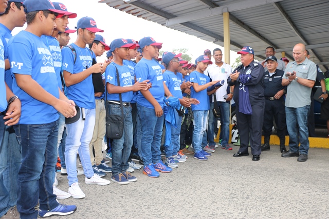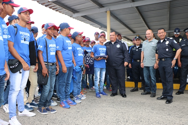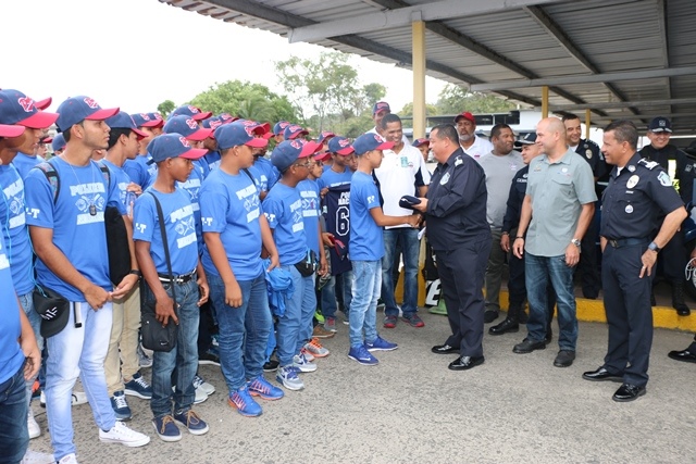 Con la ilusión de traer la copa a Panamá, este miércoles viajaron hacia Managua, Nicaragua 60 niños del programa Pony Béisbol que lleva a cabo la Policía Nacional, para participar en el Torneo de Las Américas. El Director General de la Policía Nacional Omar Ariel Pinzón Marín, recibió en la sede principal de la institución a los peloteritos, donde compartieron y les entregó el pabellón nacional. Pinzón Marín deseó suerte a los pequeños peloteros y los incentivó a dar el todo en esta copa. El programa de Pony Béisbol de la Policía Nacional a cargo del Teniente Ronald Valdez, lleva 4 categorías para que compitan en este torneo que será hasta el 20 de febrero. La Policía Nacional cree en que el deporte es la mejor herramienta para alejar a los jóvenes de caer en el riesgo de las pandillas y malos hábitos, por tal motivo siempre seguirá apoyando las actividades deportivas a nivel nacional.