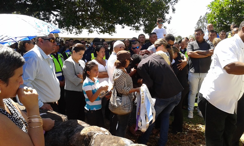 Entre lágrimas, tristezas y anécdotas, despedimos a nuestro compañero Alexander Rellán Caballero, Sargento 2do, que laboraba en la Subdirección de Operaciones de Tránsito de la provincia de Chiriquí. Rellán, quien tenía más de 13 años de laborar en la Policía Nacional, perdió la vida en el Hospital Regional de David, tras accidentarse en su vehículo el día anterior, en la comunidad de Rincón, distrito de Gualaca. Estuvo presente en las honras fúnebres, el Comisionado Eric Javier Amaya, jefe de la 4ta. Zona Policial de Chiriquí; el Comisionado Javier Fanuco, Director de Operaciones de Tránsito y otro altos oficiales. El señor Alejo Rellán, padre del compañero, agradeció a todos los presentes el apoyo que la familia ha recibido en estos momentos de dolor. |
