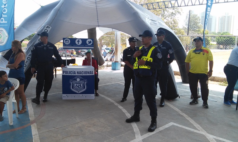 La Policía Nacional comprometida con la comunidad y dándole seguimiento a los programas preventivos, organizó a través de la 19va. Zona Policial en Chame la feria interinstitucional en la comunidad de Gorgona en conjunto con el comité de vecinos vigilantes del lugar. Esta actividad contó con la participación “Polito” y “Polita”, el conjunto típico de la 10ma. Zona policial, stands del Instituto para la Formación, Aprovechamiento de Recursos Humanos (IFARHU), la Alcaldía del distrito, el Benemérito Cuerpo de Bomberos entre otras instituciones y agrupaciones conformadas por vecinos de la comunidad. El stand de la Policía Nacional uno de los más visitados, culminado la tardes con diferentes juegos deportivos,. El Mayor Mayor Leslie Howard jefe del área policial de Chame destacó la importancia que representa para la Policía Nacional y el Director General Omar Ariel Pinzón Marín compartir con los ciudadanos, por lo que continuarán con estos acercamientos. El Mayor Howard estuvo acompañado por el subcomisionado Jaime Serrasin quien igualmente agradeció a los presentes su participación e hicieron énfasis en seguir trabajando como lo han hecho, en conjunto con la comunidad para garantizar la paz y tranquilidad.