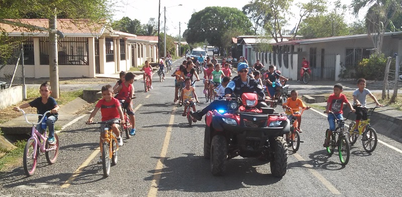 Con una vuelta en bicicleta, eventos religiosos y repartición golosinas, unidades de la Unidad de Policía Comunitaria (UPC), cuyo centro de operaciones está ubicado en el Corregimiento de Pedregal, distrito de David, clausuraron el periodo de vacaciones escolares de los niños de dicho Corregimiento. Más de medio centenar de niños, algunos acompañados de sus padres, recorrieron en sus bicicletas, las principales calles del lugar. Posteriormente, se congregaron en las instalaciones de la corregiduría donde se efectuaron oraciones y alabanzas, por parte de miembros de algunas iglesias y del propio personal de la UPC. Los niños se mostraron felices en todo momento, especialmente cuando el Capitán Nemesio Chanis, encargado de este grupo policial, en uno de los four Wheel, los paseó por el sector. |