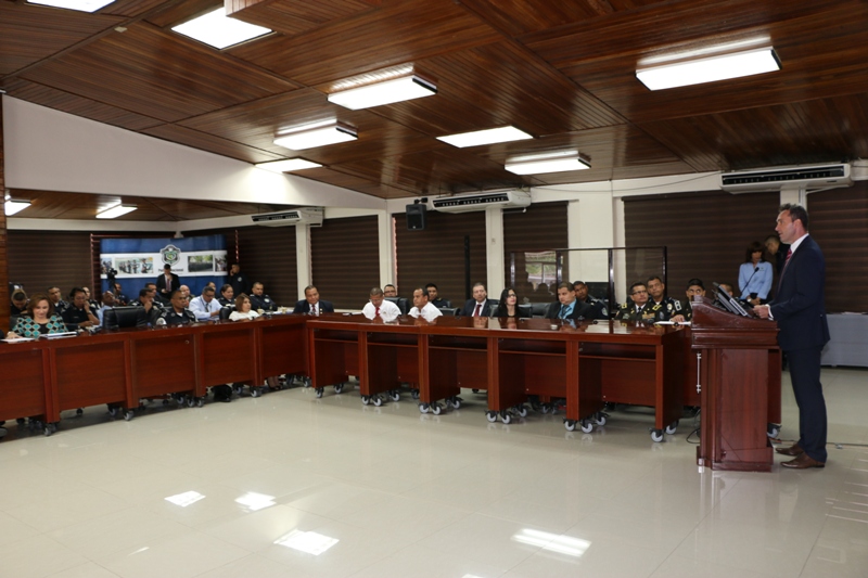 Unidades de la Policía Nacional junto a oficiales extranjero participan en el seminario “Contra la Corrupción dentro del Cumplimiento de la Ley” que se lleva a cabo en la sede de la institución policial ubicado en el corregimiento de Ancón. En la inauguración de este seminario estuvo presente el Director General de la Policía Nacional, Omar Ariel Pinzón Marín, la Procuradora de la Nación Kenia Porcell y el Encargado de Negocios de la Embajada Británica Karls Burrows quienes le dieron la bienvenida a los participantes. En el seminario que culminará el próximo viernes 4 de marzo, participan un aproximado de 70 oficiales tanto nacionales como extranjeros. Los temas abordados están relacionados al fenómeno de la corrupción dentro de las oficinas públicas, también se llevarán a cabo talleres para proponer medidas concretas y efectivas que permitan combatir este mal, entre otros. Participan en esta capacitación oficiales de Costa Rica, El Salvador, Nicaragua, Honduras, Guatemala, México, Ecuador, Paraguay. La Policía Nacional continuará con este tipo de capacitaciones, ya que el conocimiento y la experiencia adquirida, será compartido con otras personas en cada una de las instituciones que estuvieron presentes.