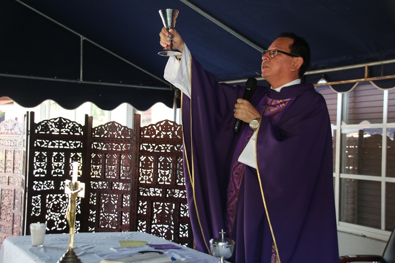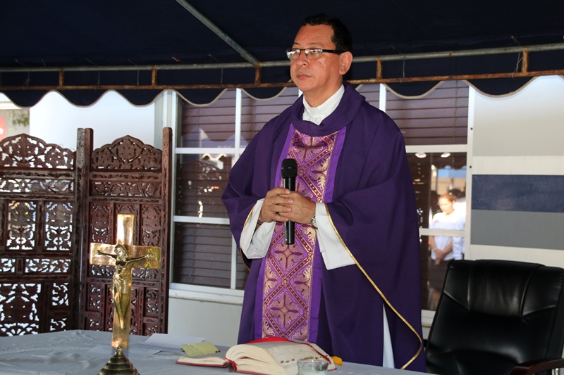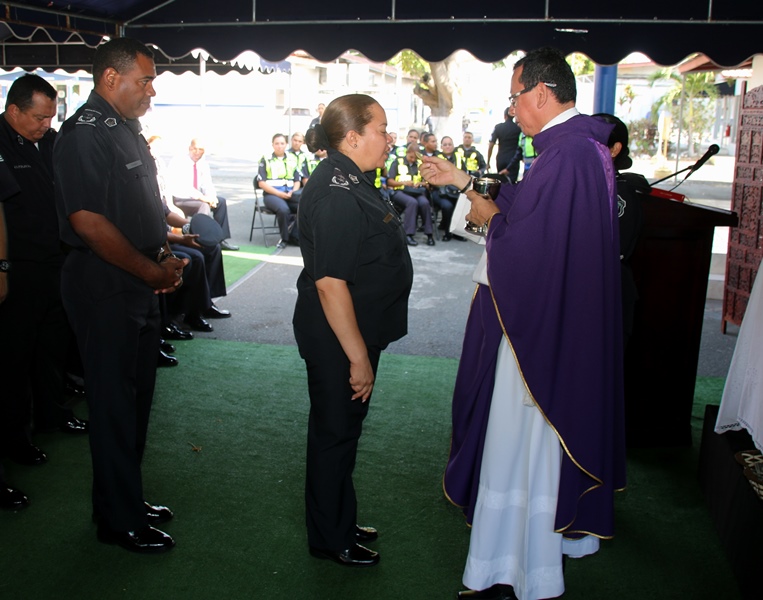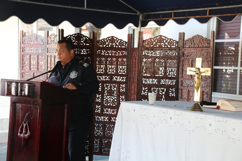 Unidades de la Policía Nacional de servicio en la Dirección Nacional de Operaciones del Tránsito, se reunieron ayer para agradecer a Dios las bendiciones recibidas, en una eucaristía llevada a cabo en las inmediaciones de esta oficina en el corregimiento de Ancón. El Capellán de la Policía Nacional Edgar Flores dio algunas palabras de aliento hacia el trabajo de esta gran dirección, rezo por los compañeros caídos, la misma dirección apoyo con canastillas. Estuvieron miembros del Directorio y el Director General de la Policía Nacional, Omar Ariel Pinzón Marín. |