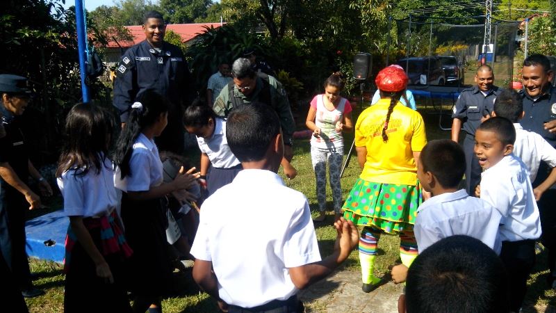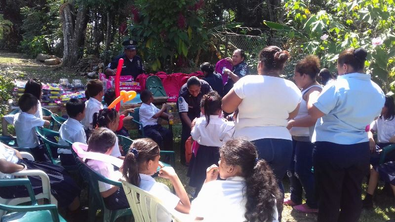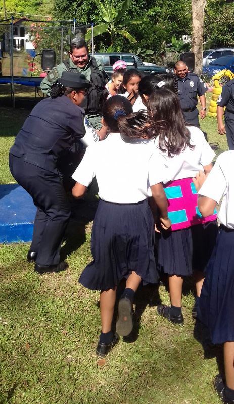 Unidades de la Policía Nacional de servicio en el distrito de Bugaba, provincia de Chiriquí, llevaron diversión y alegría a los niños de la Escuela San Miguel del Yuco, además se entregó útiles escolares y juguetes. El acto de apertura inició con las palabras de reflexión a cargo de la Subteniente Itzá Gaitán, quien agradeció al Dios Todopoderoso por darnos un día más de vida y permitirnos compartir con estos estudiantes. Seguidamente la Profesora Rosmery Pitty, Directora del Plantel, aprovechó para dar gracias a la Policía Nacional por el aporte y por las mejoras efectuadas a las instalaciones del centro educativo. También se contó con la participación de las payasitas “Pam Pum”, quienes animaron el evento con diferentes tipos de juegos y actividades para los niños, logrando llenar de felicidad a todos. Estuvo presente el Comisionado Eric Javier Amaya Sánchez, jefe de la 4ta. Zona Policial de Chiriquí, y el Subcomisionado Alejandro Urriola, Encargado del área de Bugaba. |