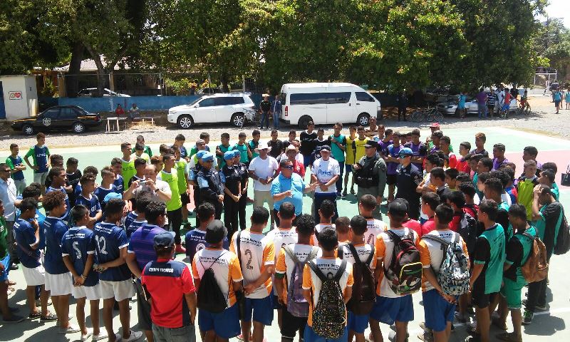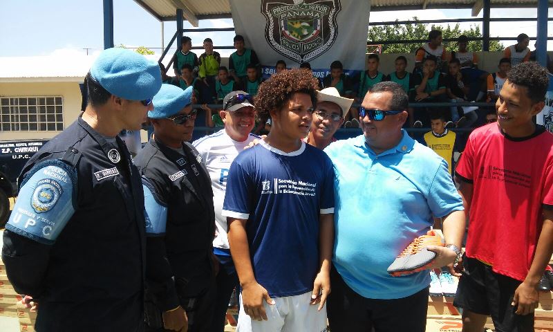 Con un solo propósito, tender un canal de comunicación directo e informar de manera adecuada sobre la misión y los servicios que brinda la institución, el Director General de la Policía Nacional, Omar Ariel Pinzón Marín recorrió diversos puntos de la provincia de Chiriquí. El Director General desde el pasado jueves estuvo junto a miembros del Directorio en el recinto de la Feria Internacional de David, en su versión número 61, donde se ofrecieron diversos servicios policiales, a fin de que la comunidad sienta que tienen una Policía amiga y a su servicio. En medio de su visita presenció la distribución de volantes que contenían tips sobre seguridad; presenciando el trabajo que realizan las unidades policiales haciendo gala del lema Proteger y Servir, además interactúo con los presentes donde abordó diferentes temas entre ellos prevención y seguridad. La jornada continúo con la reunión que sostuvo con la Procuradora General de la Nación, Licenciada Kenia Porcell; el Comisionado Eric Javier Amaya Sánchez, Jefe de esta zona policial y demás oficiales; donde abordaron diversos temas referentes a la provincia. Así mismo, compartió con los niños y niñas del Centro de Orientación Infantil y Familiar (COIF), “Fuente del Saber”, de Chiriquí. Su paso por Chiriquí concluyó con la entrega de tacos al equipo de fútbol categoría sub-17 que participaron de la Liga Convivencia Pacífica, esta entrega se debe a una promesa del jefe policial; torneo, organizado por la Policía Nacional, que salió trinfador equipo de Los Bambanes del barrio San Cristóbal de la ciudad de David a Pedregal, 2 goles por 1.