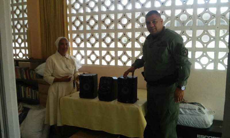 Unidades de la Policía Nacional de servicio en la Zona de Policía de Colón, hicieron entrega de un equipo de sonido a los encargados del asilo de Santa Luisa, ubicado en el corregimiento de Puerto Pilón. El equipo que había sido hurtado del asilo, fue recuperado por las unidades de Sabanitas quienes también capturaron al responsable del hurto y puesto órdenes de las autoridades competentes. Sor Aida Otero, encargada del asilo agradeció a la Policía Nacional la recuperación del equipo de sonido ya que con este equipo se le brinda un rato de esparcimiento a los abuelitos que se encuentran en el lugar. La Policía Nacional invita a la comunidad a seguir denunciando los hechos delictivos a los teléfonos 475-7049, 475-7031, 475-7051 y al 104. |