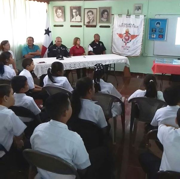Unidades de la Policía Nacional de servicios en la Zona de Policía de Chiriquí, realizaron el Lanzamiento del Programa de Prevención de Educación para la Resistencia al Uso y Abuso de las Drogas y la Violencia "DARE", en la Escuela Leopoldina Field, distrito de Dolega. En el acto se contó con la presencia del Subcomisionado Manuel Vence, ejecutivo de esta zona policial, la Profesora Dalis Ortega, subdirectora del Plantel Educativo, agentes uniformados y estudiantes. En este programa participaran 227 alumnos de los cuartos, quintos y sextos grados, a cargo del Sargento 1ro. Porfirio Jaramillo, de la Policía de la Niñez y Adolescencia de la provincia. La Subdirectora del Centro Educativo, Profesora Dalis Ortega, dio las gracias a los agentes uniformados, por llevar a la escuela este programa que es de suma importancia para los estudiantes, ya que aleja a los niños de las drogas y de la violencia. El Sargento 1ro. Porfirio Jaramillo, encargado del Programa D.A.R.E., en la provincia, agregó que para él es de suma importancia darles a conocer este programa preventivo, ya que es importante conocer los perjuicios que provocan las drogas, y lo que queremos es que ustedes tengan un mejor futuro, ya que son el futuro de nuestra patria, la Policía somos amigos de todos. Para finalizar el acto el Subcomisionado Manuel Vence, ejecutivo de la zona policial, agradeció a la Directora de la Escuela por haber permitido implementar este programa que es de suma importancia y de compartir el flagelo de las drogas y la violencia, considerando que los principios fundamentales son los valores para rescatar nuestra sociedad panameña. “Quien más que los estudiantes para llevarlos de la mano poco a poco para que conozcan cuales son las consecuencias que puede traer el uso y abuso de las drogas y el alcohol. Este programa es para guiarlos y recalcarles que ustedes los niños son las semillas, son los que van a llevar más adelante nuestro país, son el futuro”, acotó el Subcomisionado Vence.