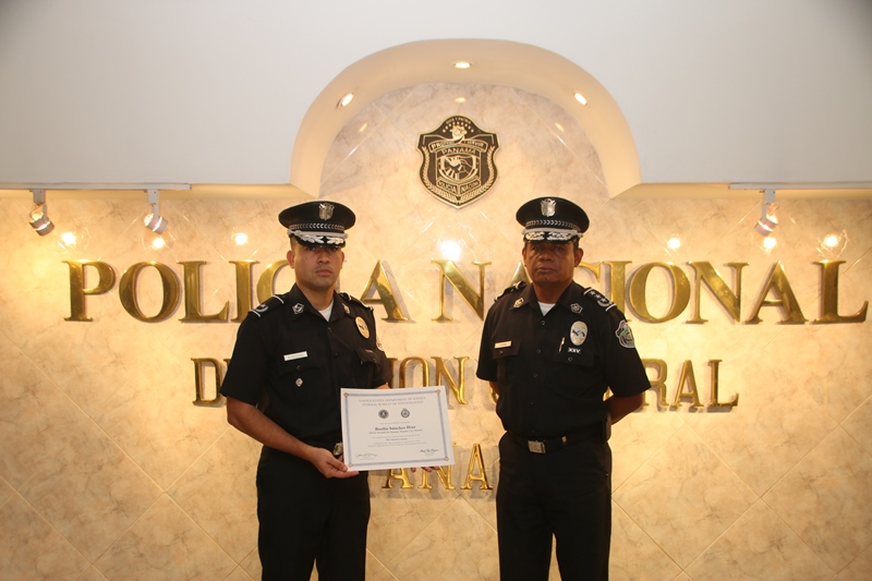 El mayor Basilio Sánchez Díaz, de la Dirección Nacional de Responsabilidad Profesional (PRP) de la Policía Nacional, culminó exitosamente el curso de Liderazgo dictado en la Academia Nacional de FBI en Quántico Virginia, Estados Unidos. El curso que tuvo una duración de 10 semanas inició el 11 de enero hasta el 18 de marzo del 2016, con el objetivo de formar líderes en las instituciones de seguridad, por lo que contó con 230 oficiales de la región. Los participantes tuvieron la oportunidad de ampliar los conocimientos de diferentes temas que fueron desarrollados en siete materias encaminadas en el liderazgo. El Secretario General de la Policía Nacional, Cristóbal Rivera, recibió en su despacho al mayo Sánchez, felicitándolo por esta experiencia académica, la cual será de apoyo en la labor que realiza la institución. |