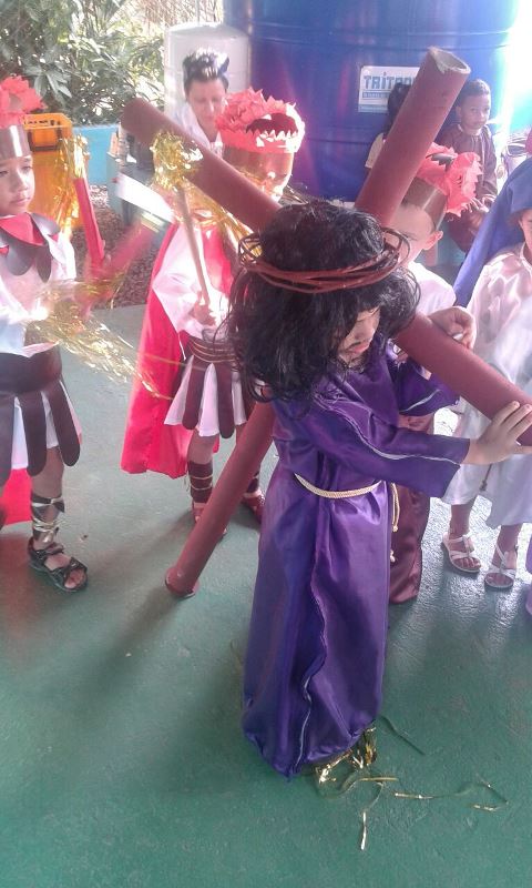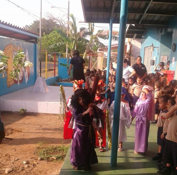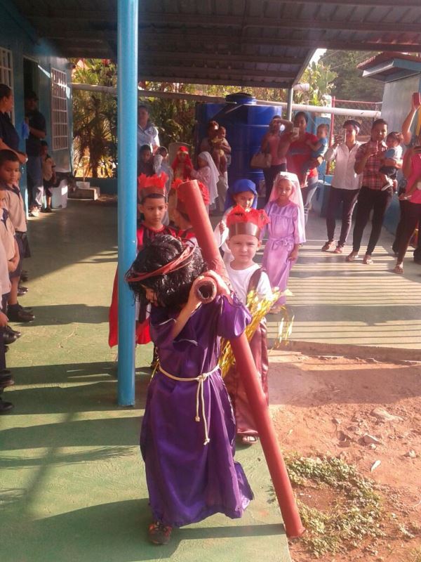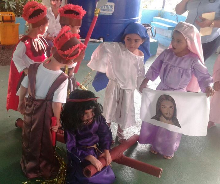 Conmemorando la Semana Santa, los estudiantes del Pre kínder “B”, del Centro de Orientación Infantil “Fuente del Saber”, de la 4ta. Zona Policial de Chiriquí, realizaron en el acto cívico una presentación en vivo del Vía Crucis de nuestro Salvador Jesucristo. La Subteniente Beatriz Aparicio, encargada del C.O.I.F en la provincia, manifestó que con esta actividad damos un mensaje de reflexión en practicar el perdón y reconocer que Jesús murió en la cruz por nuestros pecados. “Practiquemos el ejemplo de amor más grande, como dice Juan 3:16 "Porque de tal manera amó Dios al mundo, que ha dado a su Hijo unigénito, para que todo aquel que en él cree, no se pierda, más tenga vida eterna”, agregó la Subteniente Aparicio.