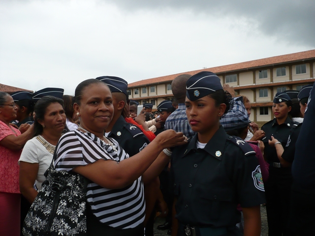 La Escuela de Oficiales de Policía "Dr. Justo Arosemena" (Esopol) de la Policía Nacional organizó el viernes 18 de marzo la ceremonia de imposición de capona para 150 cadetes de primer ingreso que se están formando dentro de este centro de estudio policial. De este grupo de jóvenes aspirantes a oficiales 148 son panameños y dos provienen de República Dominicana, quienes han visto en este centro de estudio la oportunidad para una formación integral en el respeto de las leyes y la democracia. El director de la Policía Nacional Omar Pinzón Marín estuvo presidiendo la ceremonia en compañía del Director Nacional de Docencia, el Comisionado Jorge Escobar y el jefe de la Zona de Policía de Colón el Comisionado Carlos Rumbo. Para el jefe de la primera Institución de Seguridad es de suma importancia que los padres de familia de estos jóvenes los apoyen en este proceso porque verán cambios en la formación del carácter y en la disciplina. El Director Omar Pinzón Marín agradeció a los padres y tutores la confianza depositada en la Policía Nacional para ser los que se encarguen de formarlos ya que el único beneficiado en este proceso de reclutamiento es el país, que verá resguardada su soberanía con esta camada de nuevos oficiales. Por su parte el director de Docencia, el comisionado Jorge Escobar, los cambios que se están realizando en la Policía Nacional en materia educativa se están viendo y prueba de ello es la participación de naciones hermanas de América Central y Suramérica que envían a sus policías a formarse en nuestras escuelas y eso es importante porque Panamá ha dejado de ser un país que recibía cooperación a un país que da cooperación. Los padres de familia de estos futuros oficiales llenos de emoción, y sentimientos encontrados fueron los encargados de colocarle la capona de primer ingreso a estos 150 cadetes.