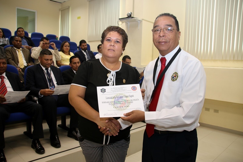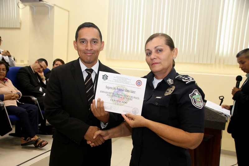 La Dirección Nacional de Asesoría Legal de la Policía Nacional culminó este viernes 18 de marzo, del seminario denominado “Rol de la Defensa Técnica del Policía en el Sistema Penal Acusatorio”, llevado a cabo en el Centro de Capacitación de la Procuraduría de la Administración. Esta capacitación tuvo como objetivo desarrollar habilidades que permitan realizar sus funciones como asesores legales de la entidad policial, conforme a los principios, reglas y procedimiento del Sistema Penal Acusatorio (SPA). En esta actividad donde participaron 25 miembros de la Dirección Nacional de Asesoría Legal, se abordaron temas como “Jurisdicción y Competencia”, “Importancia de la Aplicación de los Procedimientos Alternos de Solución”, “Teoría del Caso”, “Derecho a la Defensa Técnica y los Recursos en el Sistema Penal Acusatorio”. Como expositores de los temas estuvo juez de Juicio Oral de Coclé, Daniel Vargas; Fiscal Superior de Panamá, Argentina Barrera y Magistrado del Tribunal de Apelaciones de Coclé, Samir Tejeira. También estuvo asesores legales de las Zonas de Policía de Coclé y Veraguas, estos últimos compartieron sus vivencias implementado el SPA. Por parte de la Policía Nacional, estuvo la comisionada Elsa Garzón, Jefa de la Dirección Nacional de Policía Ecológica y el mayor Luis Alberto Vega Bonilla, Coordinador de la Oficina de Implementación del Sistema Penal Acusatorio.