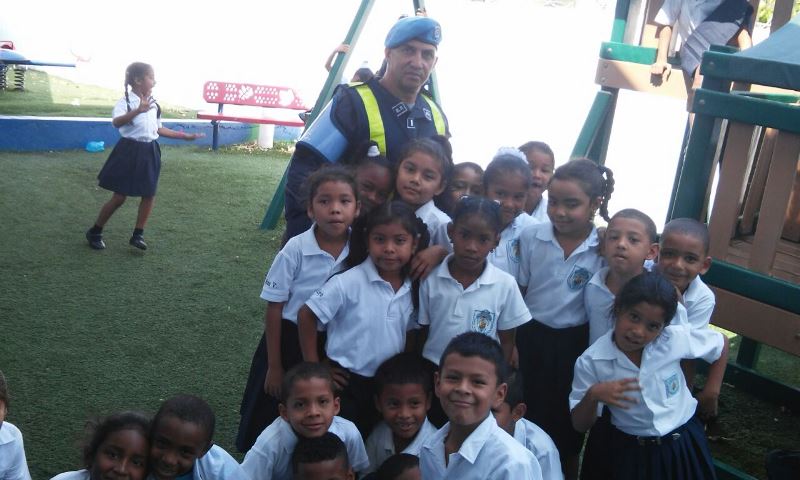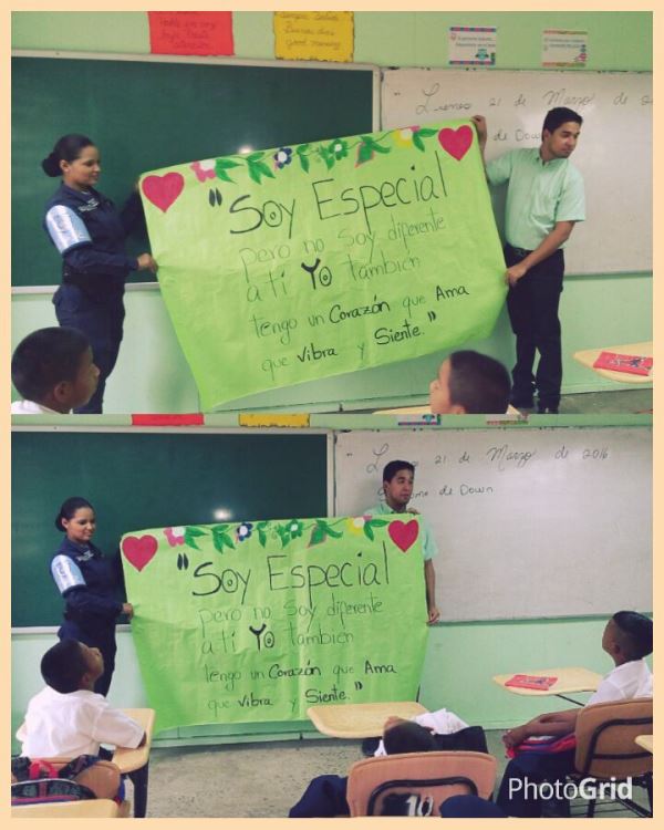 Efectivos de la Policía Nacional de servicio en Zona de Policía de San Miguelito y la Unidad Preventiva Comunitaria (UPC) de Samaria participaron en actividades desarrolladas para niños y niñas del distrito de San Miguelito, en conmemoración este 21 de marzo del 2016, del Día Internacional del Síndrome de Down. En la escuela Severino Hernández, ubicada en Paraíso, se hizo un reconocimiento a alumnos con capacidades especiales, quienes con su perseverancia logran superar obstáculos y llevar adelante sus estudios. Mientras que con el lema “Amor sin fronteras”, estos uniformados acompañaron a los alumnos de la escuela Don Bosco que con globos y pancartas con mensajes motivadores alusivos a esta fecha, salieron a las calle, próximo a los predios del plantel, para recordar a la comunidad que la inclusión es fundamental en el desarrollo de las habilidades de los niños con Síndrome de Down. De esta manera la Policía Nacional también se une a esta celebración, con el propósito de crear conciencia sobre el tema, promover la dignidad y derechos de personas con discapacidad intelectual.