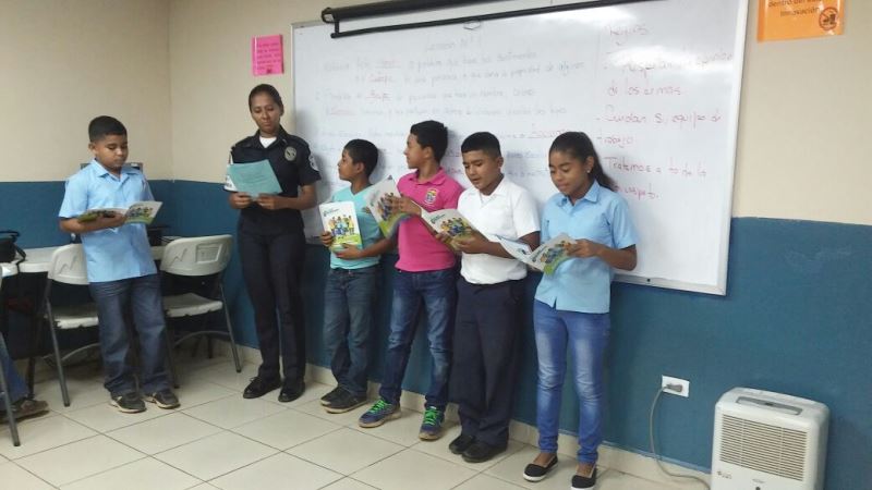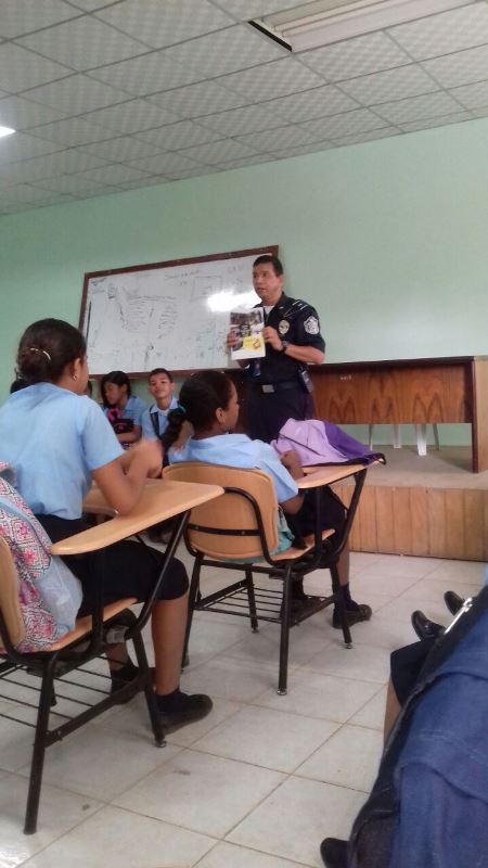 Efectivos de la Policía Nacional a través del Servicio de Niñez y Adolescencia continúan su labor de prevención en las escuelas con la reciente capacitación de 492 estudiantes en las provincias de Herrera, Veraguas, Bocas del Toro, Chiriquí y el distrito de Chepo. Los centros educativos Padre Segundo Familiar Cano, en Monagrillo; Cielo Herrera y José B. Alvarado, en Soná; Miraflores, en Almirante; escuela Soledad de Risco, en Changuinola; Venancio Pascual, en Chepo y Benigno Tomás Argote en Boquete, fueron visitados por los uniformados, quienes orientaron a los alumnos sobre el acoso escolar, a resistir a las pandillas, presión de grupo, y a las drogas. Estas capacitaciones forman parte de los programas de prevención y desarrollo humano G.R.E.A.T y D.A.R.E que desarrolla la Policía Nacional, con el objetivo de brindarles herramientas que les ayude a tomar buenas decisiones, además de fortalecer su autoestima. La Policía Nacional tiene como meta la prevención en niños y adolescentes a través de la educación, por es importante el trabajo conjunto con las autoridades educativas, docentes y padres de familia, con quienes se mantiene el constante acercamiento. Las capacitaciones continuarán realizándose a nivel de todos los planteles educativos del país con el firme propósito de promover valores y contribuir en la formación integral de los futuros hombres y mujeres de bien.