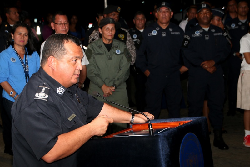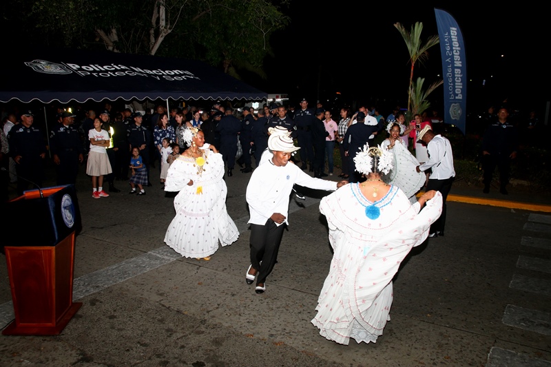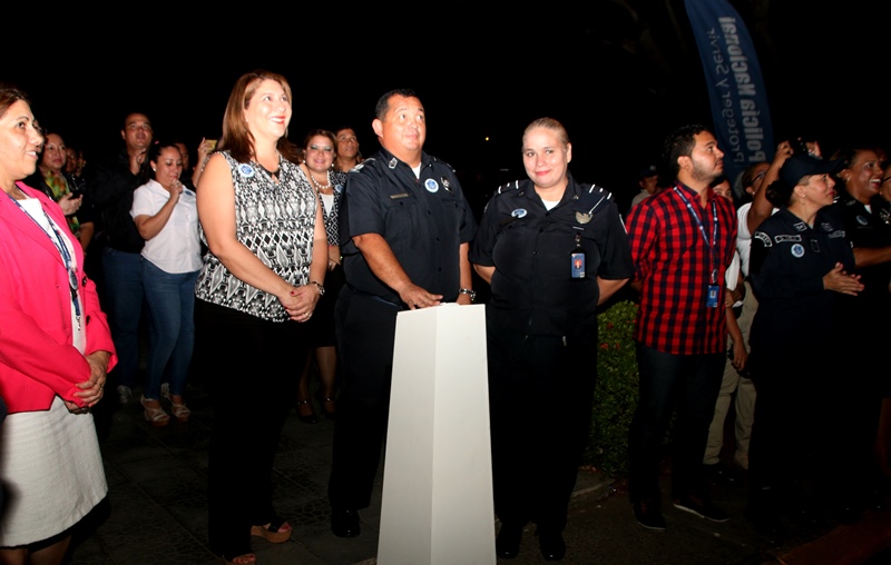 En el marco de la celebración del mes del “Día del Policía”, la Policía Nacional inició este viernes 1 de abril, la campaña “Dale Valor al Azul” en la que se destaca los principios que posee el uniformado como “la Honestidad, Solidaridad, Espíritu de Cuerpo, Disciplina, Coraje, Sacrificio, Doctrina Policial, Lealtad y Respeto”. El Director General de la Policía Nacional, Omar Ariel Pinzón Marín estuvo presente en esta importante ceremonia donde se incendió luces azules en toda la institución ubicada en el corregimiento de Ancón, donde igualmente. “El azul es pureza, integridad, el azul es infinito, el azul es grandeza, el azul es un tono temporal que se usa en cualquier época del año, pero el azul que nosotros portamos representa el color de la sangre de la hermandad policial” destacó el jefe policial. También, que este color conlleva mucha responsabilidad, caminar con orgullo de decir que somos policías y que existe un fortalecimiento del servicio que prestamos. El lanzamiento de esta campaña inició con la invocación religiosa presidida por el Capellán Edgar Flores, quien expresó a los uniformados el orgullo de ser policía, orgullo que debe ser transmitido a la comunidad. En la actividad se mostró un video que ilustra los valores que caracterizan a los hombres y mujeres de la entidad e igualmente, los presentes disfrutaron de un baile folklórico y de una poesía por parte del niño Isaac Guerrero ganador del concurso "Mini Orador del TVN 2015". |