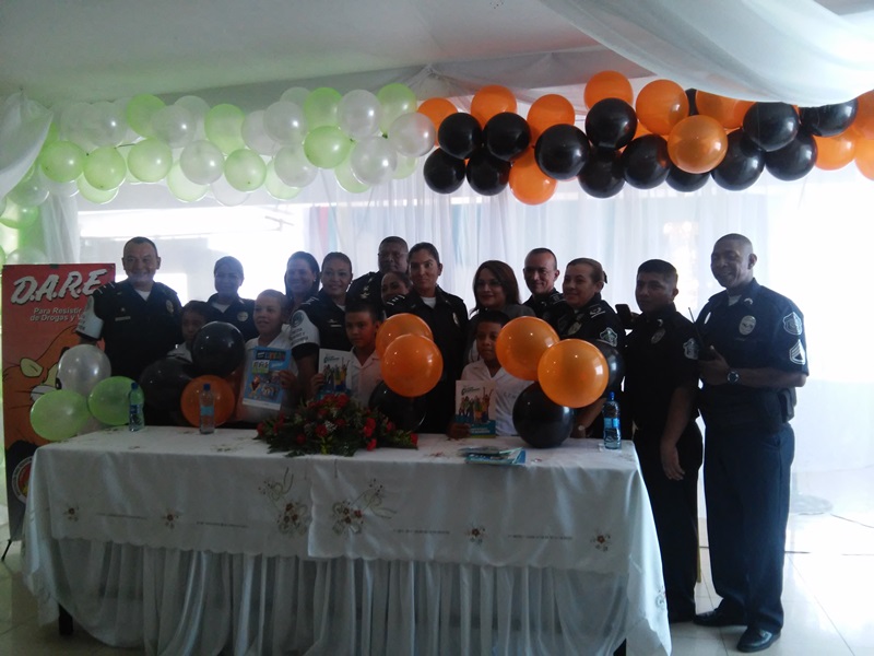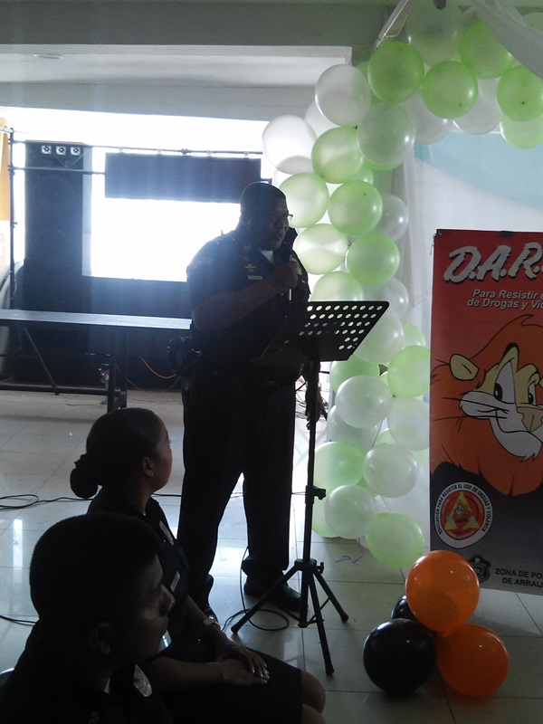 Con una lucida ceremonia se inauguró los programas de desarrollo humano Educación y Entrenamiento en Resistencia a las Pandillas (G.R.E.A.T.) y Prevención de Educación para la Resistencia al Uso y Abuso de las Drogas y la Violencia (D.A.R.E.), en el distrito de Arraiján. En la inauguración de estos programas dirigidos a estudiantes de 17 centros educativos del distrito, estuvo presente el Comisionado Luis Navarro Parris, jefe de la Treceava Zona Policial y la Subcomisionada Aida Villarreal, Jefa del Servicio de Niñez y Adolescencia de la Policía Nacional. El Comisionado Navarro manifestó que éstos programas tienen como objetivo orientar a los estudiantes para que puedan reconocer y resistir las múltiples presiones directas y sutiles que los llevan a experimentar con el alcohol, las drogas, la violencia y al flagelo del pandillerismo. El acto se realizó en la sala de eventos XIZ en Vista Alegre, donde participaron autoridades de la Dirección Regional de Educación, la Magíster Dayra Botello, Fiscal Superior de Adolescentes del Tercer Circuito Judicial, las Mayores Emilsa Moreno, Mayor Yesenia Pineda y la encargada de Niñez y Adolescencia de Arraiján, Capitán Nedelkis Díaz. Durante éste trimestre lectivo 2016, se beneficiarán estudiantes de La Polvareda, Nuevo Jerusalén, Centro Básico Nuevo Chorrillo, Residencial Vacamonte, Escuela Leonidas Delgado, San José, Cerro Silvestre, San Bernardino, Rodolfo Chiari, Valle del Sol, Guillermo Andreve, Vista Bella, entre otros.. Al finalizar el evento el Comisionado Navarro y la Subcomisionada Villarreal, conjuntamente con las autoridades civiles y educativas hicieron entrega de los cuadernillos de ambos programas a los estudiantes participantes e hicieron el corte de cinta inaugural. |