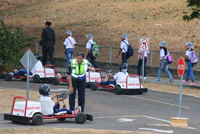 Niños y niñas se divierten mientras se capacitan en el circuito de “Educación Vial”, ubicado en el Parque Recreativo Omar, como parte de los programas educativos que lleva adelante la Policía Nacional dando valor al lema “Seguridad es un Compromiso de Todos”. Con el apoyo de la Fundación Mapfre, este proyecto pretende enseñarles las normas de comportamiento a los niños, además de realzar los valores como el respeto a los peatones, obedecer las señales de tránsito, entre otros, que les ayuden en cualquier situación que se les presente en la vía pública. El Teniente Edwantz Sánchez, es el encargado del Departamento de Educación Vial que pretende fortalecer desde temprana edad los conocimientos básicos del reglamento de tránsito, para que puedan utilizarlas de forma segura. “Para nosotros es de extrema importancia que los niños aprendan como comportarse en las vías, y así inculcarles desde pequeño el respeto y otros valores” destacó el Teniente. El parque está disponible de lunes a viernes en horarios de 9:00 a.m. a 3:00 p.m. y los días sábados y domingos desde las 8:00 a.m. hasta las 5:00 p.m. para niños de 8 a 12 años, acompañados de sus padres. La Dirección Nacional de Operaciones de Tránsito a través del Departamento de Educación Vial continúa con el compromiso de educar y orientar a la niñez, con el objetivo de que comprendan las necesidades de establecer medidas de defensa y seguridad, que los protejan de los riesgos existentes en las vías. |