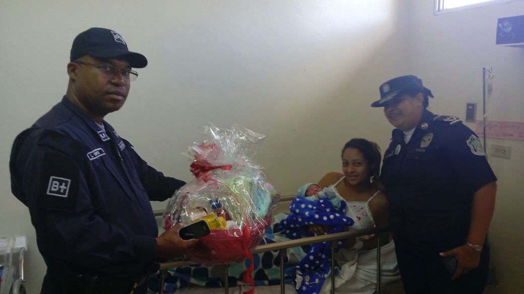 Personal juramentado y no juramentado de la Treceava Zona Policial al conmemorarse el 14 de abril el "Día del Policía" hicieron entrega de tres canastillas en las salas de maternidad del Hospital Nicolás A. Solano y Complejo Metropolitano Doctor Harmodio Arias Madrid . La entrega se hizo de manera simultánea a las señoras Génesis Boyd y Joselin Velásquez, ambas madres de dos niñas. La tercera canastilla le fue entregada a la señora Daryoris Aguirre de Pino, esposa del Cabo 2do. 22147 Benjamin Pino. |