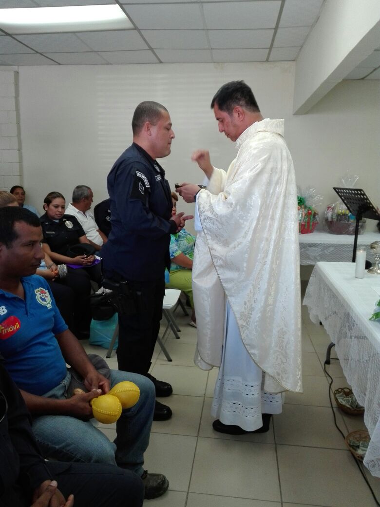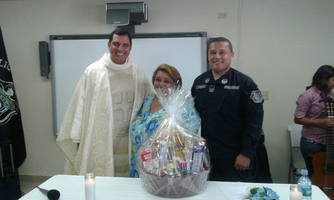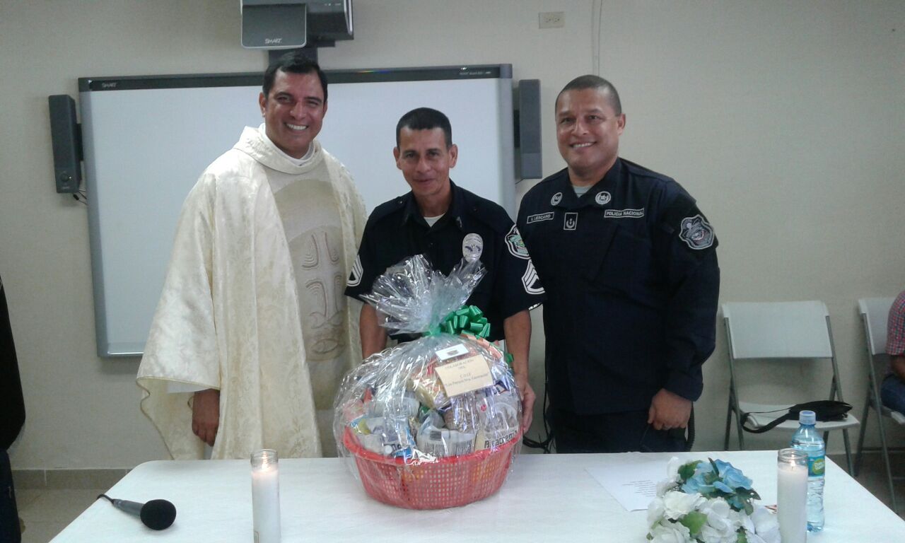 Como parte de la celebración del “Día del Policía”, la Décima Zona de Policía de Panamá Oeste realizó una misa en las instalaciones de la sede a cargo del párroco Jorge Rivera Rodríguez. El padre Rivera Rodríguez motivó a las unidades mostrando consejos del diario vivir, impulsando la unión y que el hecho de creer en la fe puede aumentar nuestra confianza. En esta misa se le obsequió canastas de comida a dos de nuestras compañeras por situaciones especiales, al igual que uno de nuestros uniformados el sargento 1ro Efrén Arjona por su gran humildad, generosidad y carisma con sus compañeros. Por otra parte, se hizo entrega de dos canastillas en el Hospital Regional Nicolás A. Solano a los dos primeros niños que nacieron el 14 de abril. Las beneficiadas se fueron Joselyn Velázquez quien trajo al mundo una niña y Giseth Ríos quien dio a luz un varoncito, muy emocionadas agradecieron por el gran gesto de parte de las unidades. Una tercera canastilla se le entrego a una unidad femenina de la zona que esta próxima a salir de licencia por gravidez. Este año se conmemoran 79 aniversarios del día del policía, donde se resalta la gran labor y desempeño de las unidades policiales ya que es un trabajo de entrega, compromiso y dedicación a favor de nuestra patria.