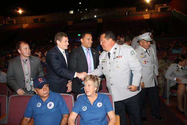 Por segundo año consecutivo, se llevó a cabo el “Conversatorio de los Programas Preventivos Comunitarios”, el escenario fue el teatro de Balboa, donde se dieron cita más de 500 integrantes de estos programas. En su intervención el Ministro de Seguridad Pública, Rodolfo Aguilera, detalló todos los avances que se han tenido en esta materia y resaltó el apoyo incondicional de la comunidad en la lucha para combatir los hechos delictivos. “Tenemos resultados positivos y hoy ustedes son testigos que en Colón, los homicidios han bajado notablemente. Todo gracias a las acciones tomadas con el programa de Barrio Seguros”, destacó Aguilera durante su presentación. Por su parte, el Director General de la Policía Nacional, Omar Ariel Pinzón Marín, explicó que las acciones preventivas que se realizan a diario en las diferentes calles del país, son parte de las políticas de seguridad creadas por el Presidente de la República, Juan Carlos Varela. “Estamos combatiendo el crimen organizado y las pandillas, estamos detrás de aquellas personas que ignoren el llamado de dejar su vida delictiva. gracias por su respaldo y la confianza depositada en nosotros”, indicó Pinzón Marín. A juicio del Comisionado y Jefe del Departamento de Seguridad Ciudadana, Rafael Álvarez, cada día son más las familias, empresarios y ganaderos que se unen para colaborar con la Policía Nacional para enfrentar los hechos delictivos. Para Manuel Castillo, Presidente de la Asociación de Ganaderos, formar parte de este programa ha sido muy positivo, pues se ha logrado coordinar acciones preventivas que han permitido la disminución de los hurtos pecuarios y dar con las personas que se dedicaban a esta actividad ilícita. En tanto, Jaime Anguizola, Representantes de Hoteles Vigilantes, la iniciativa promovida por la Policía Nacional es muy valiosa y las personas así lo ven, considerándolo un programa exitoso. Hasta el momento se han inaugurado 1,123 programas Vecinos Vigilantes en todo el país, 48 piqueras de transporte público se han integrado a Transportistas Vigilantes, 86 bancos afiliados, 63 hoteles, 4 universidades, etc. |